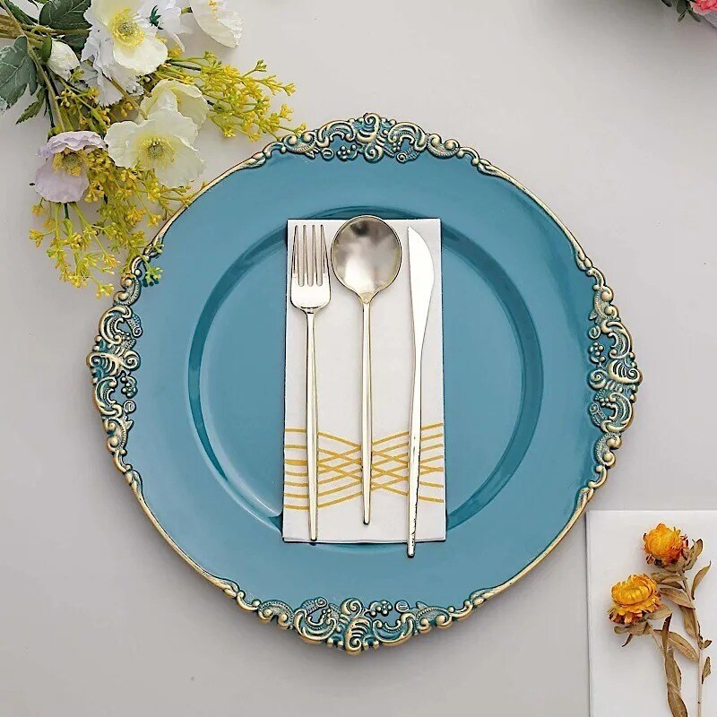 6 PEACOCK TEAL 13" Round with Embossed Rim Charger Plates