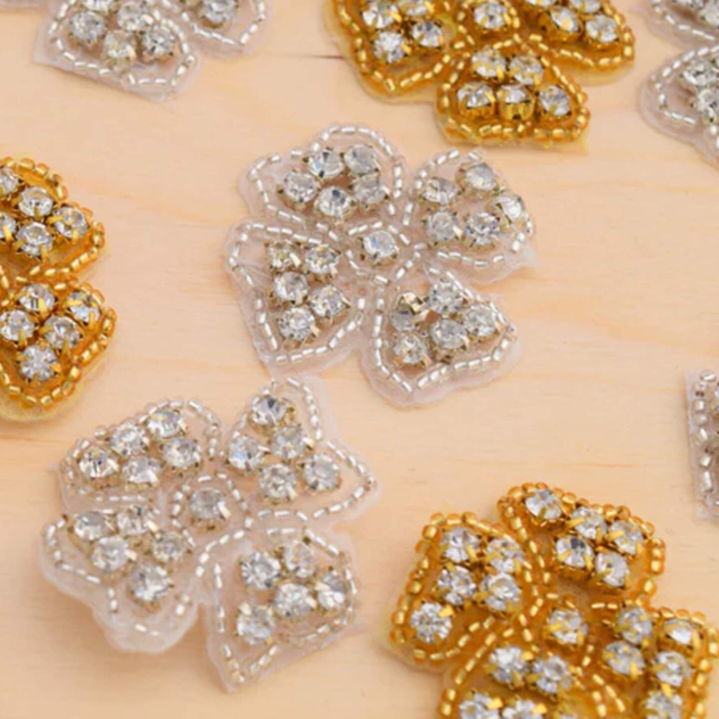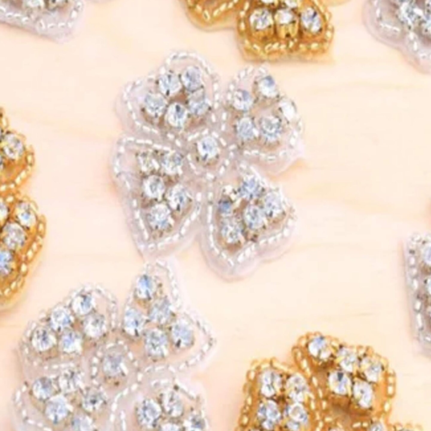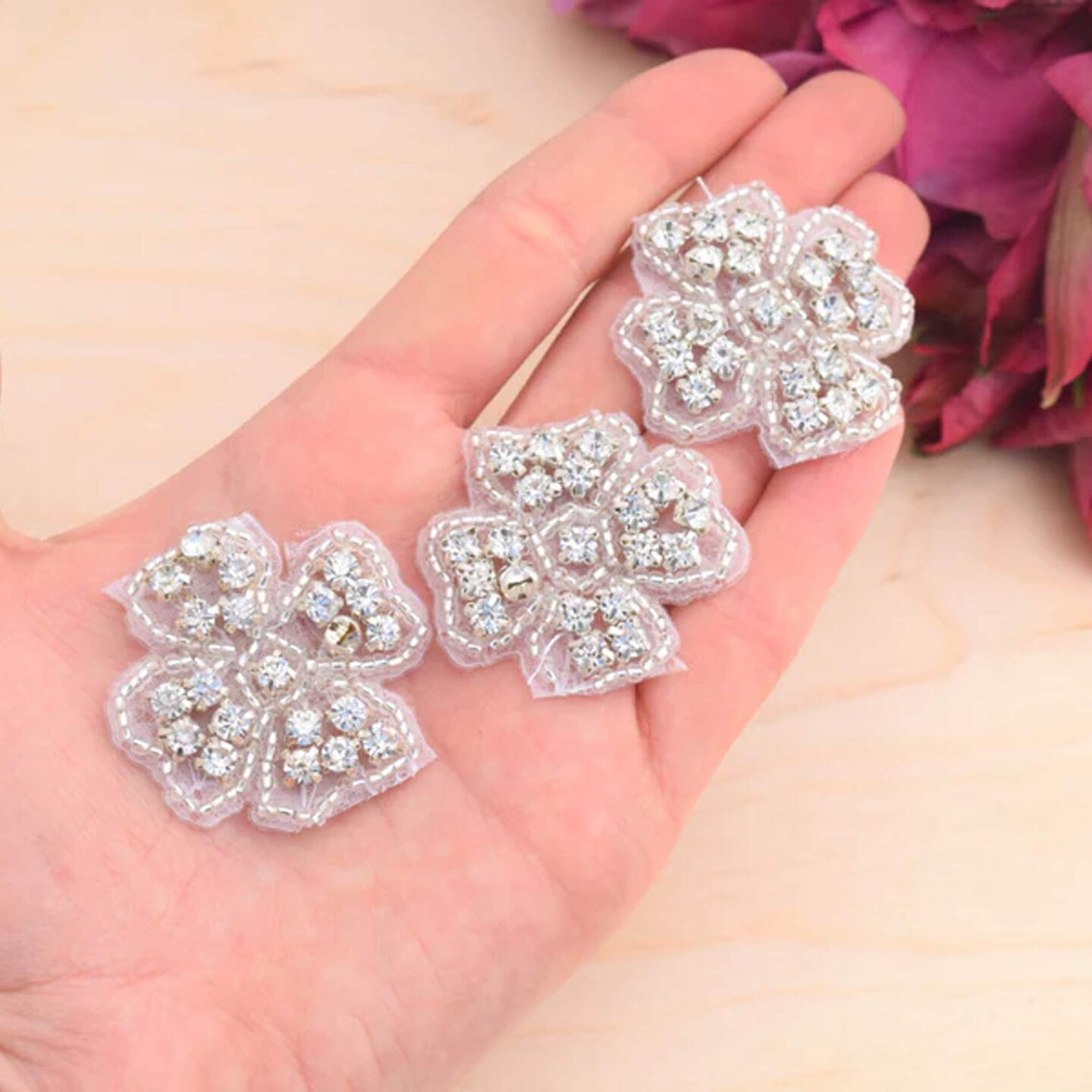 6 Pieces 1.5" Silver Rhinestone Flower Applique Patch Iron On Beaded Embellishment Craft