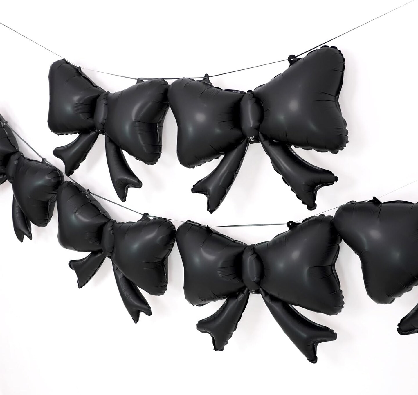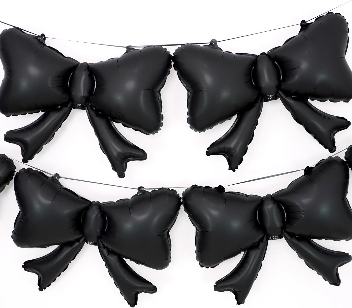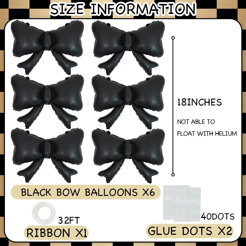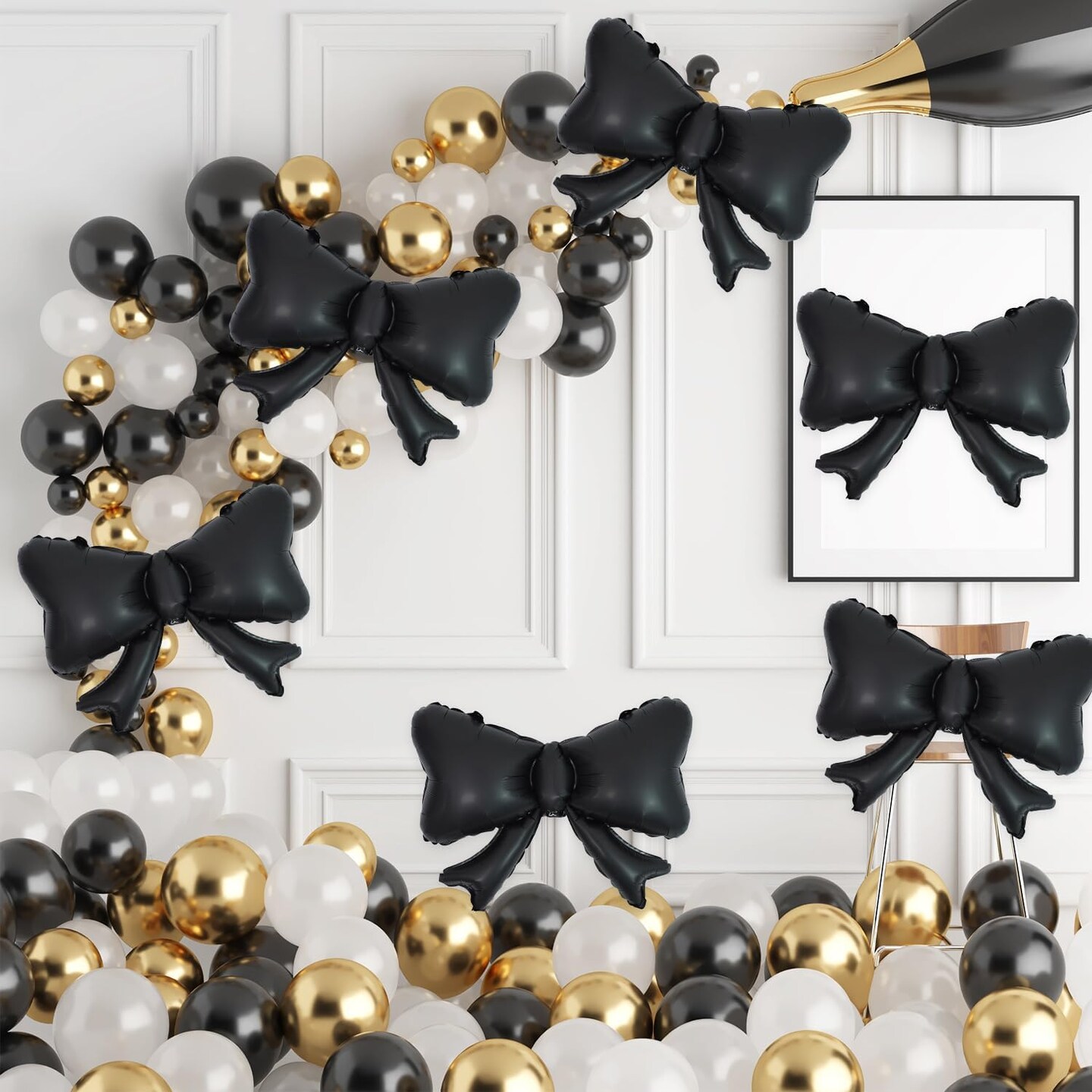 6 Pieces Bow Balloons, Black Matte Metallic Foil Bow Balloon for Men Women Boys Girls Bowtie Theme Birthday Party, Wedding Bridal Shower, Black Party Decorations, Balloon Garland Accessories