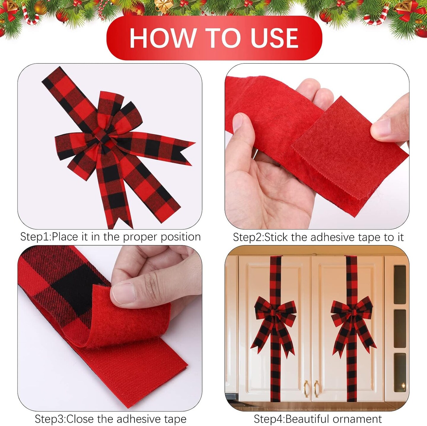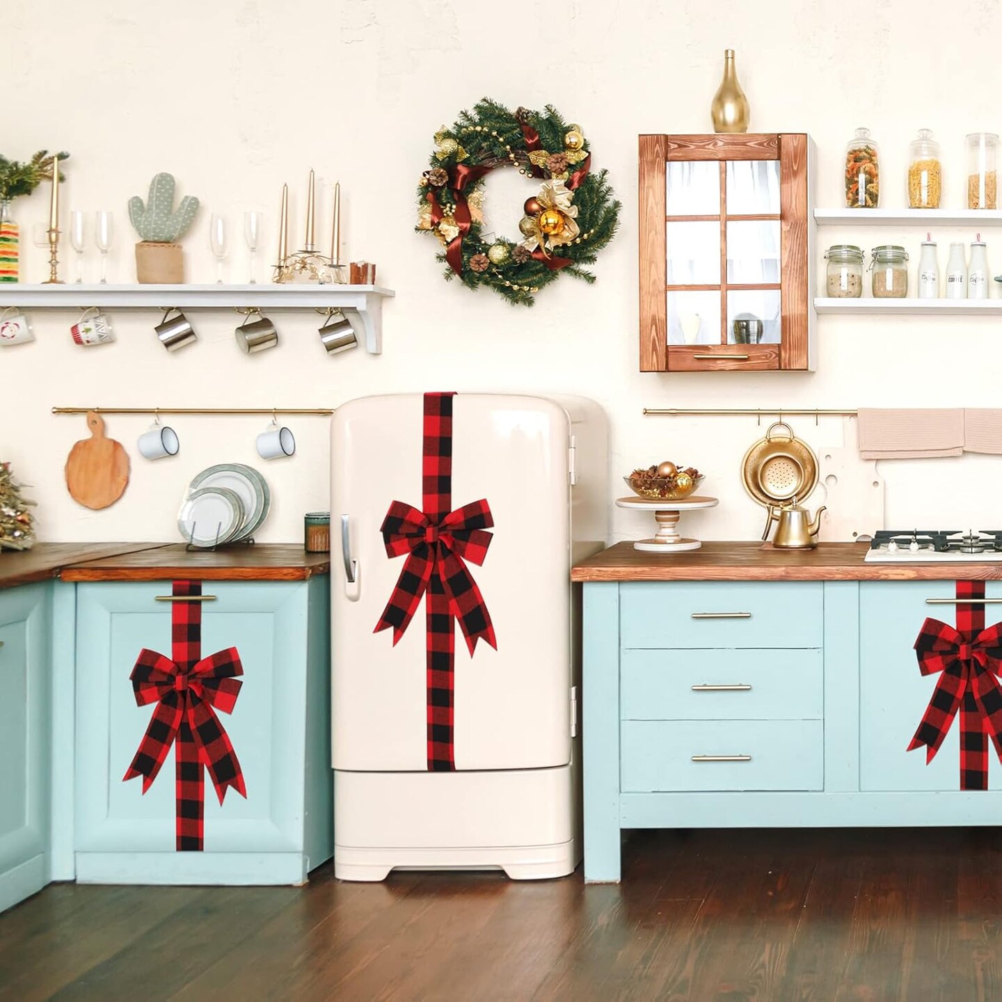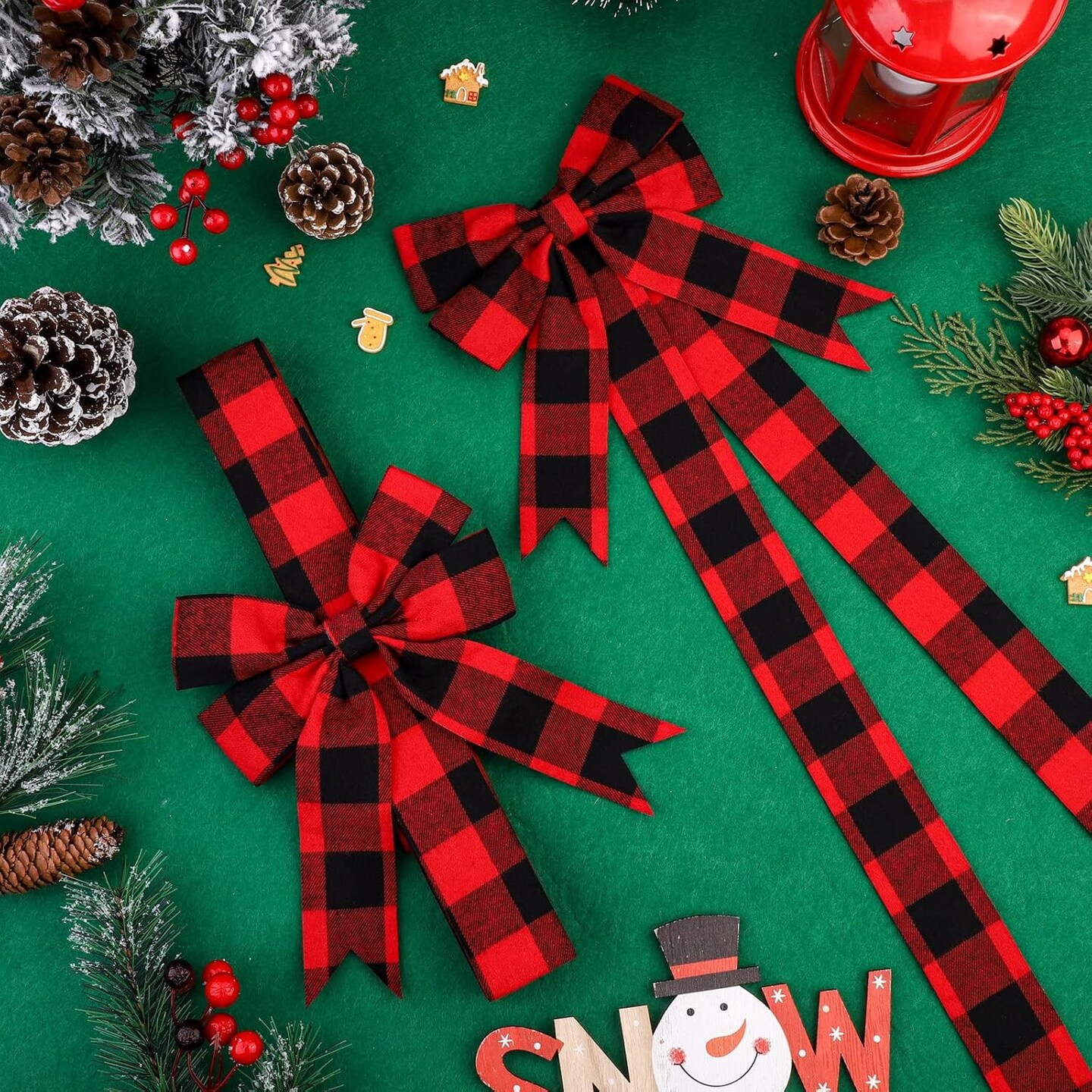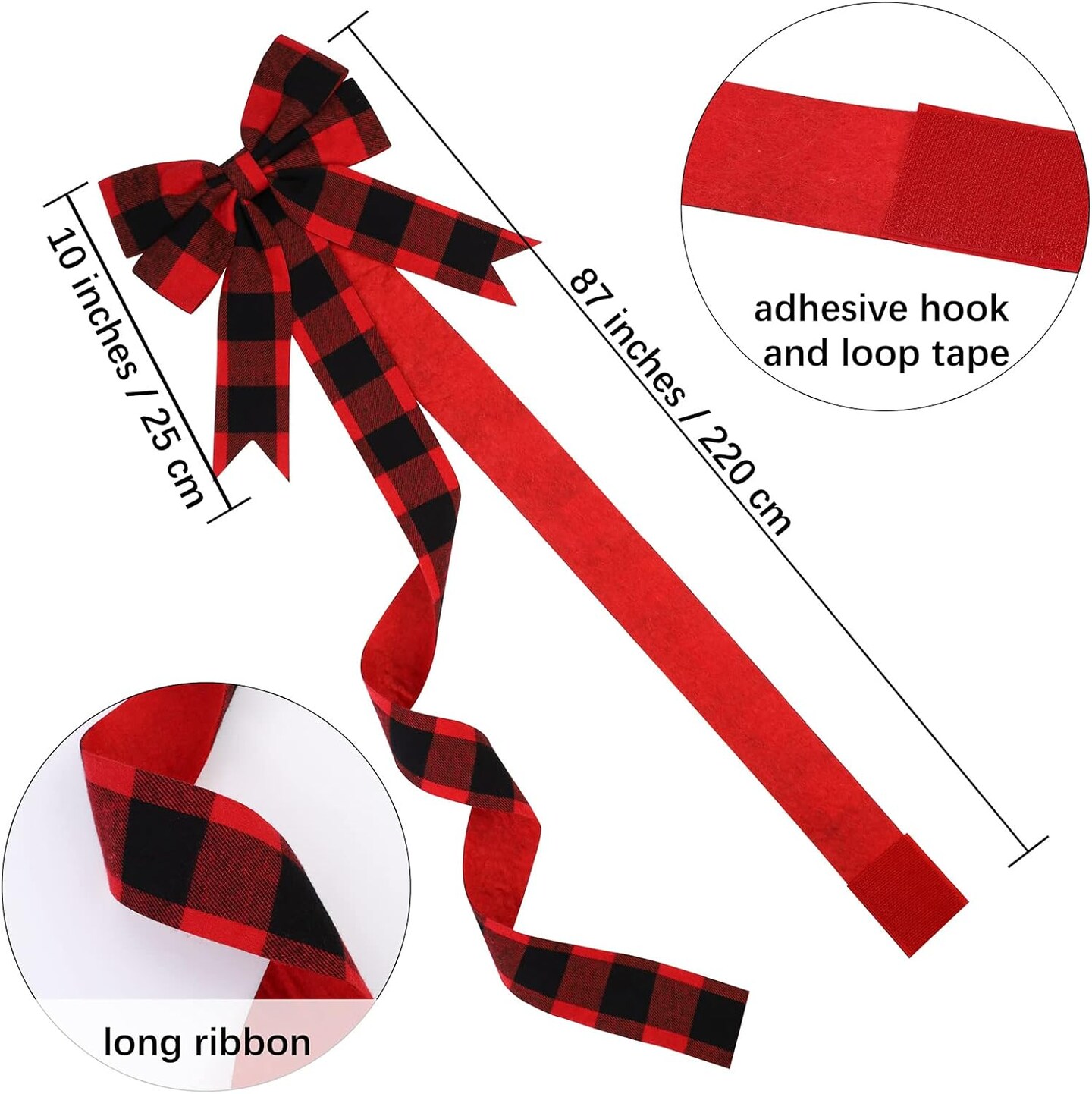 6 Pieces Christmas Door Cabinet Bows Large Christmas Red Buffalo Plaid Ribbons Cabinet Door Bows for Christmas Festive Party Supplies,10 x 87 Inches