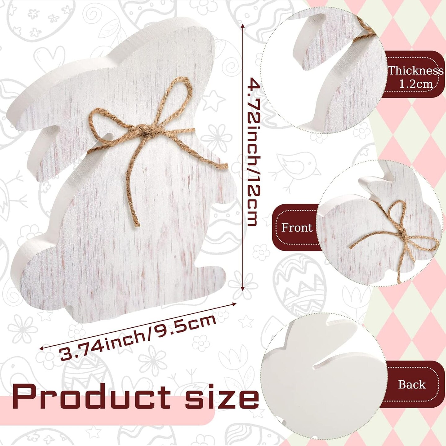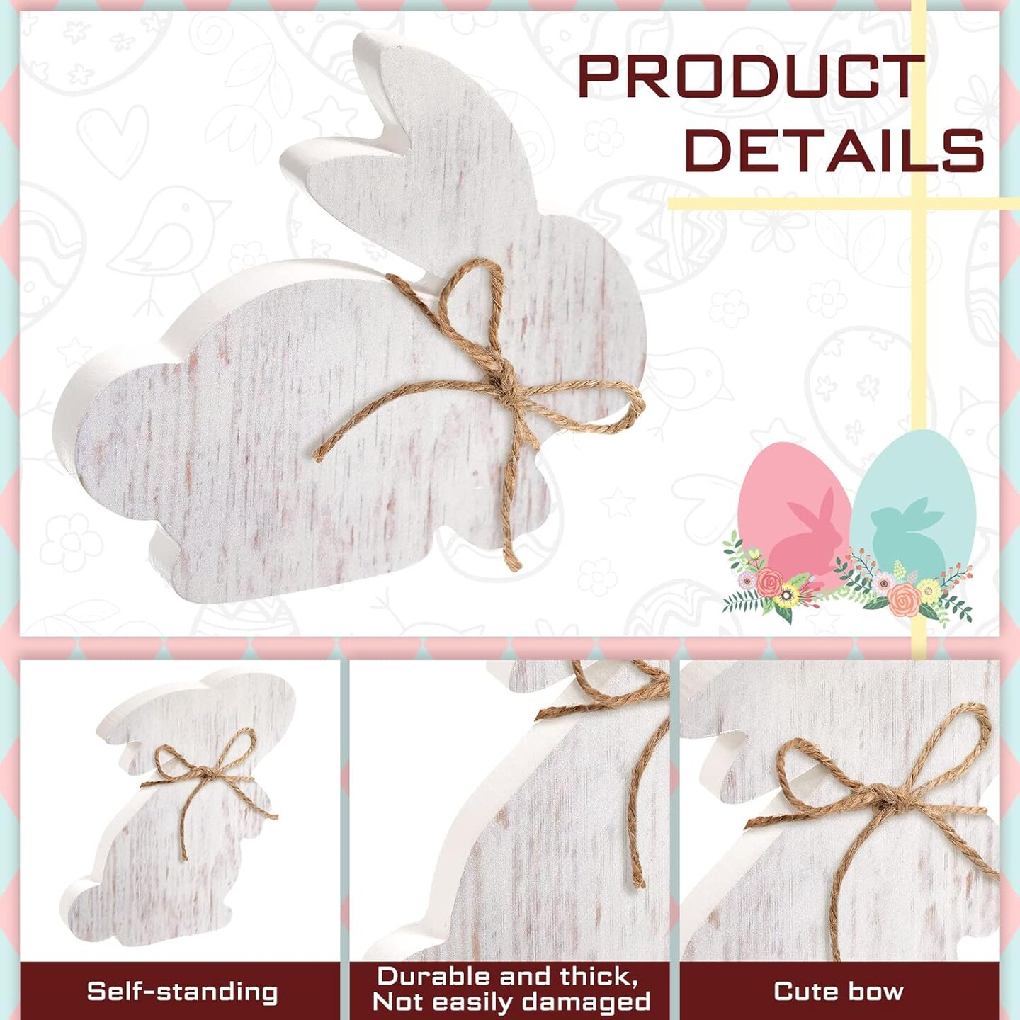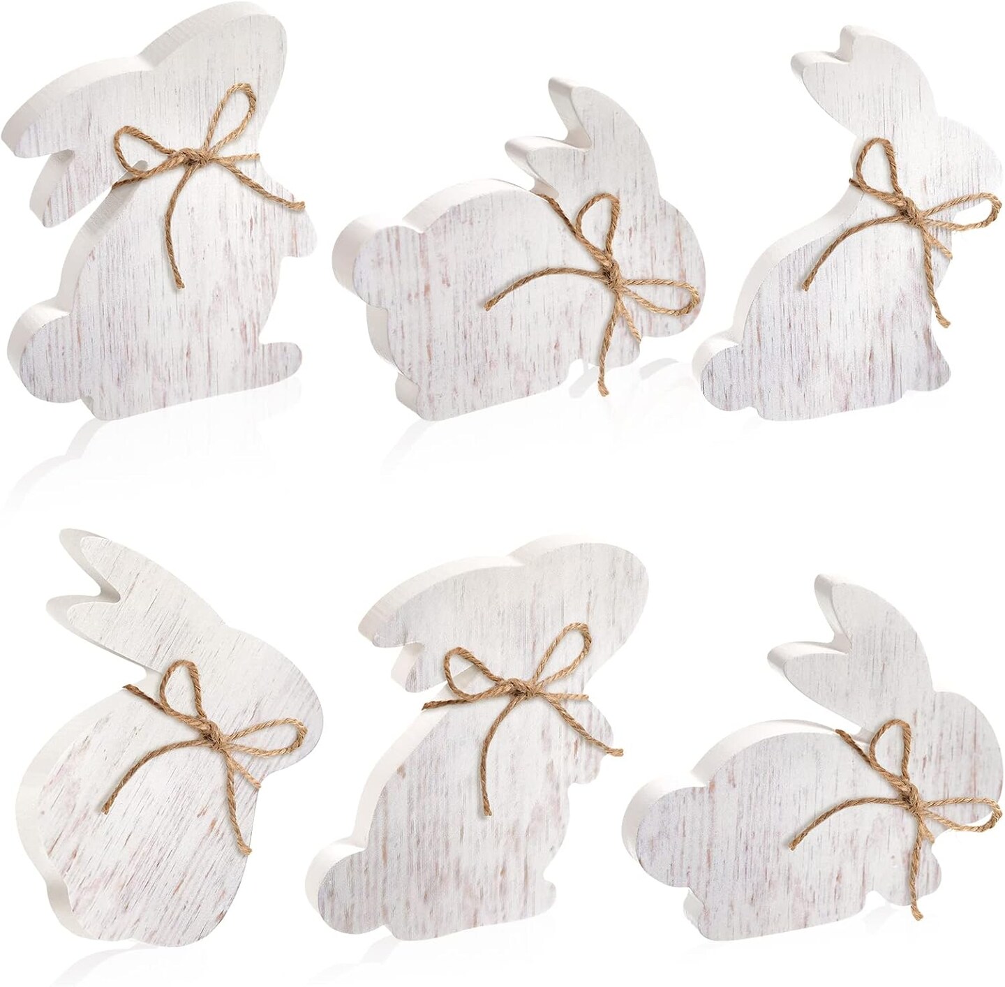 6 Pieces Easter Bunny Table Wooden Signs Bunny Shaped Farmhouse Decor White Spring Bunny Wood Tabletop Easter Centerpieces for Dinning Room Table Decor Sign Wood Bunny Decor with Rope (Classic)