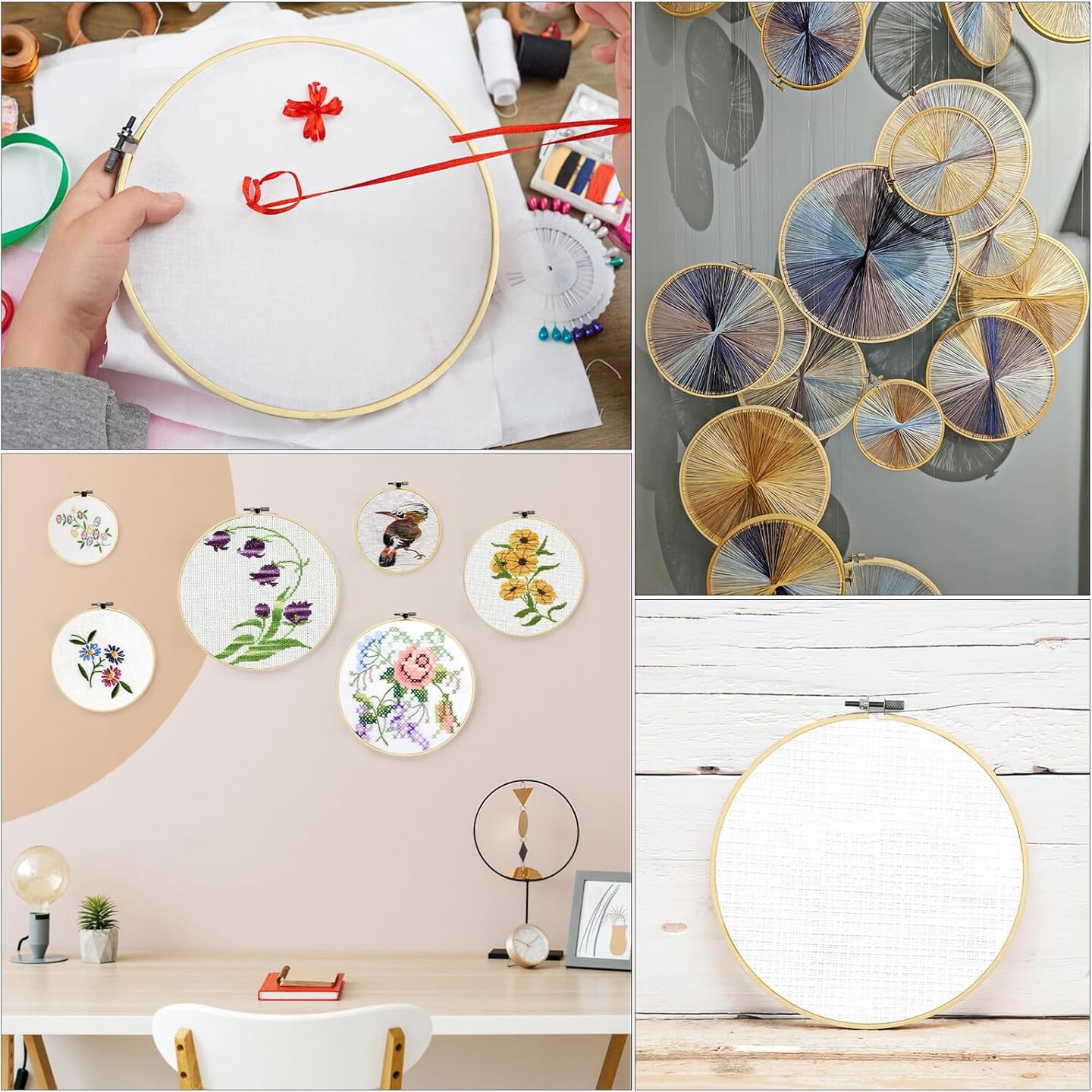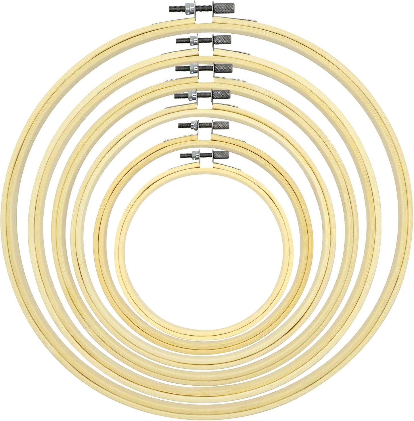6 Pieces Embroidery Hoop Adjustable Bamboo Round