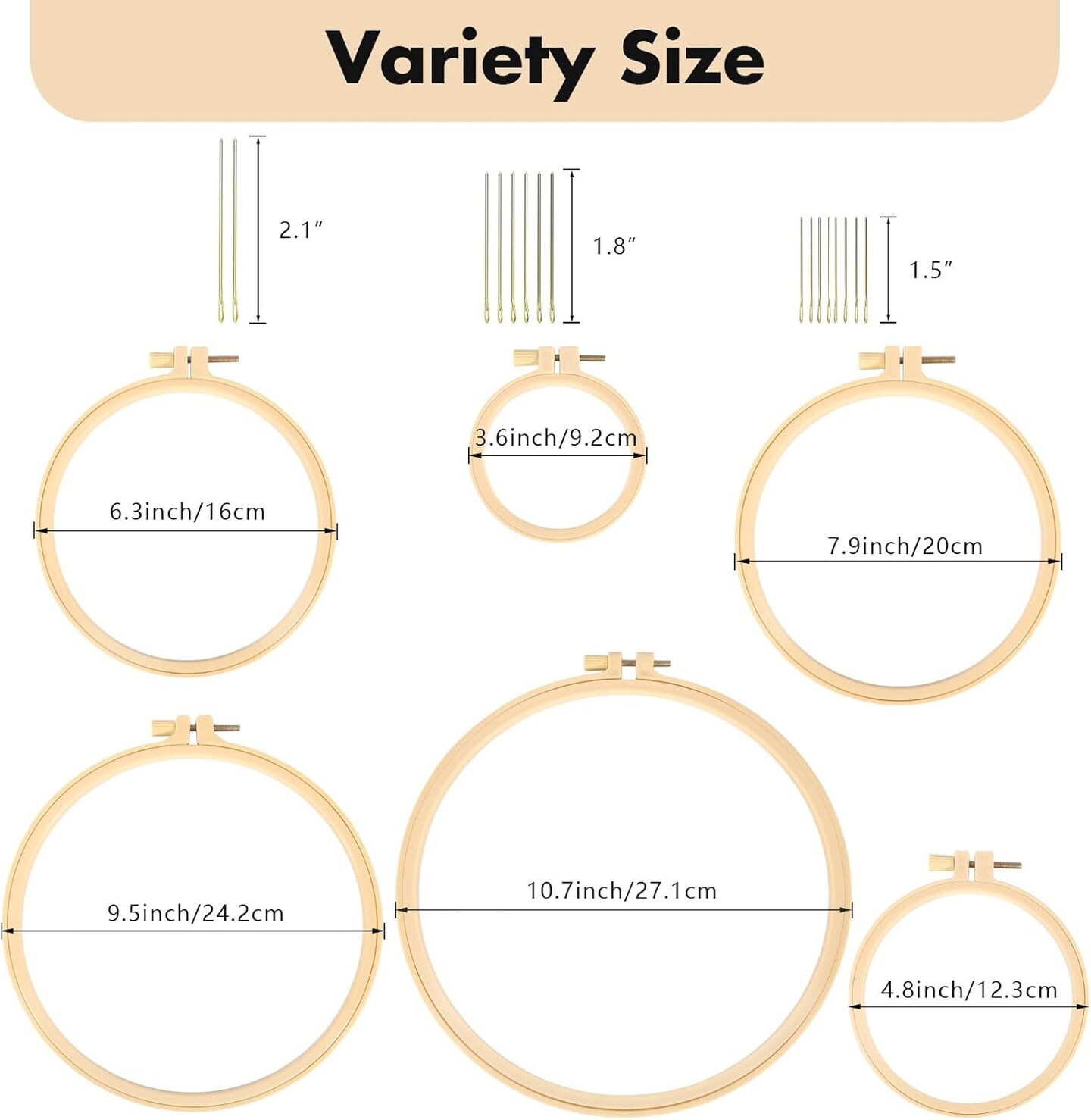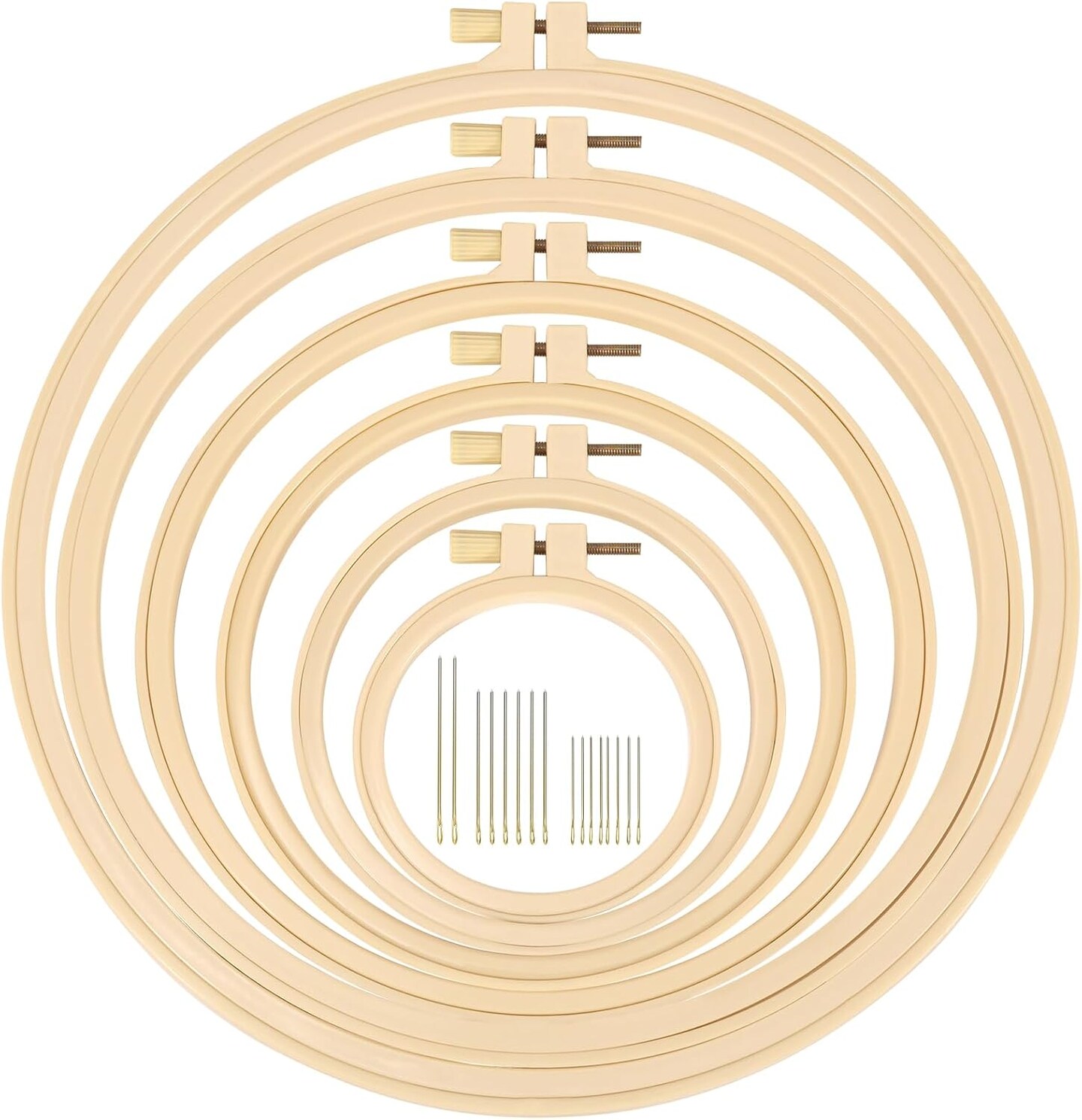 6 Pieces Embroidery Hoops 3 Inch to 10 Inch Cross Stitch Hoop,16 Pieces Needles