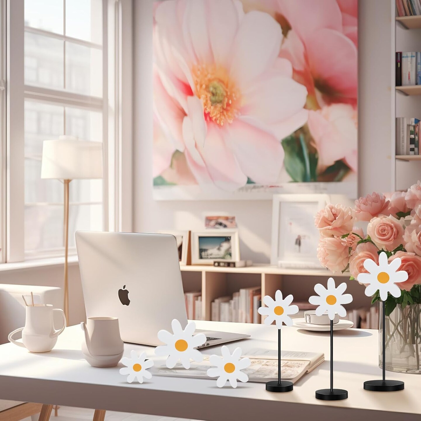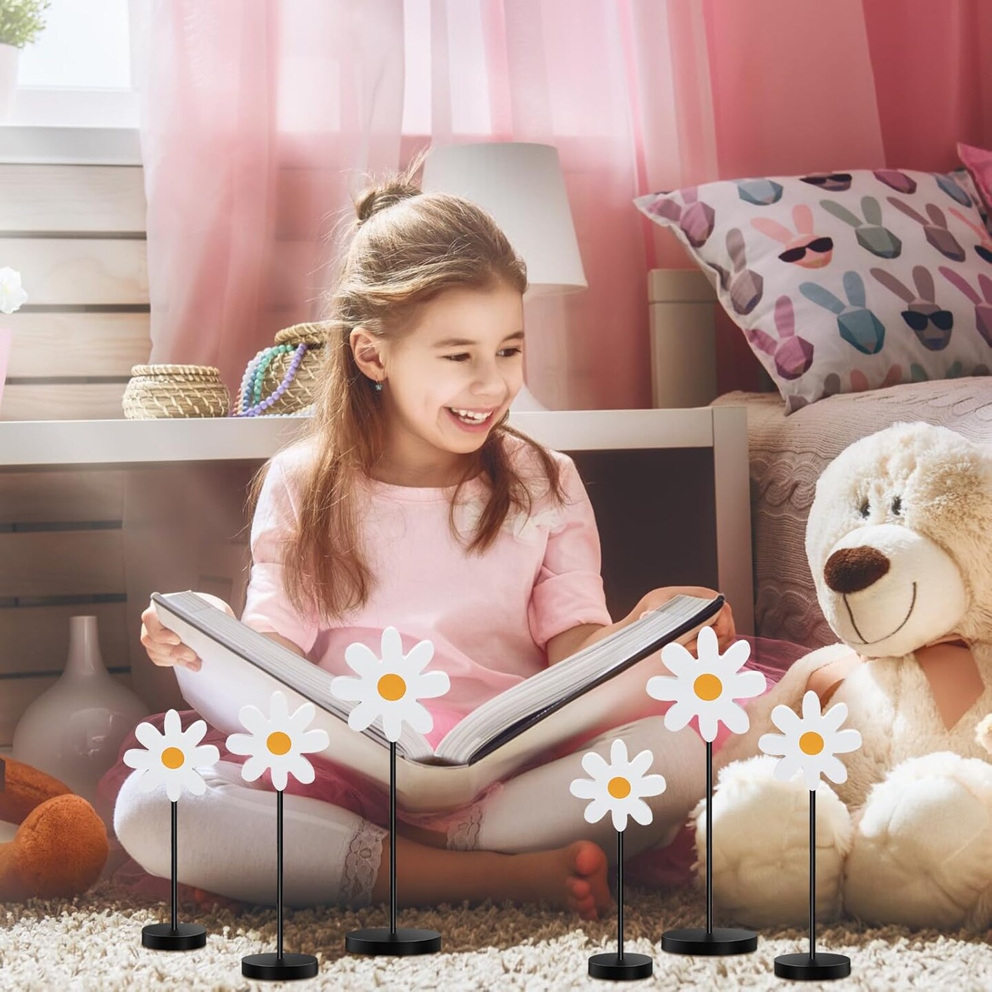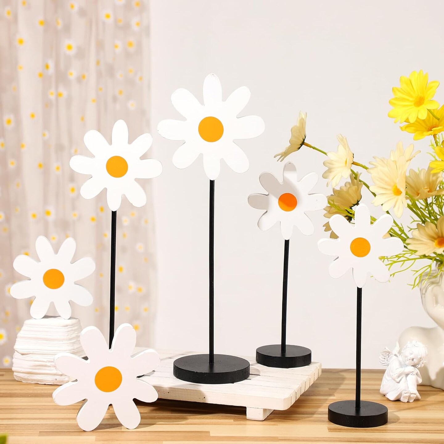 6 Pieces Summer Wooden Daisy Nursery Shelf Decor – Boho Daisy Standing Tabletop Decor, Rustic Tiered Tray Signs, Daisy Centerpiece for Party, Table Decoration, Farmhouse Home Desk & Nursery Decor