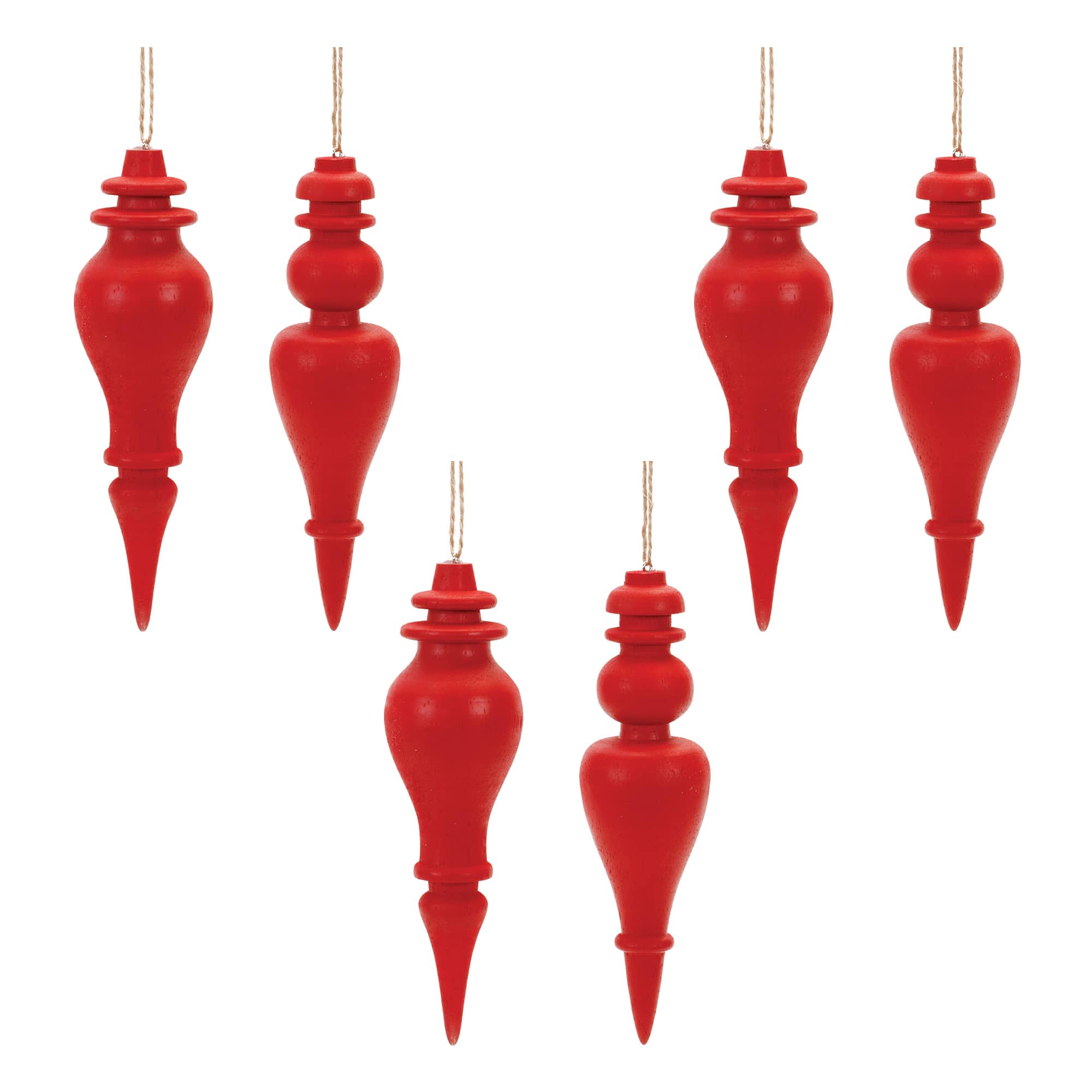 6" Red Wood Finial Drop Ornament Set