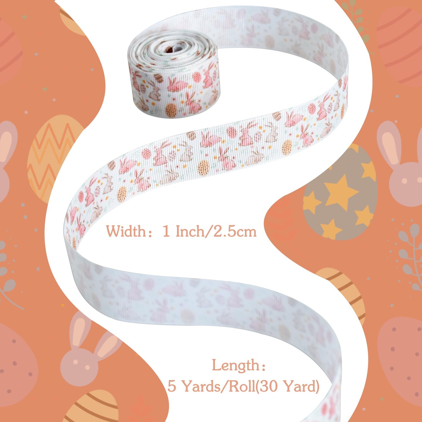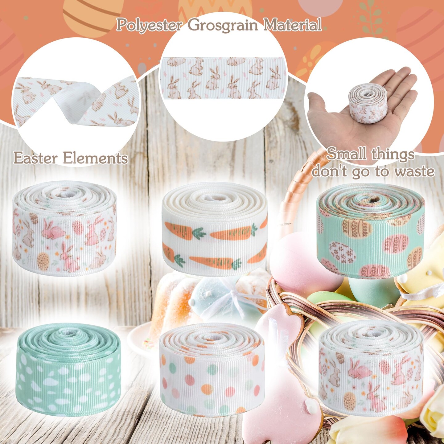 6 Rolls 1 Inch Easter Grosgrain Ribbon with Eggs/Rabbits/Carrots/Dots Pattern for Handmade Crafts, Wreaths and Gift Wrapping, Basket Decor, Bows Making, Easter Day Decoration (5 Yards/roll)