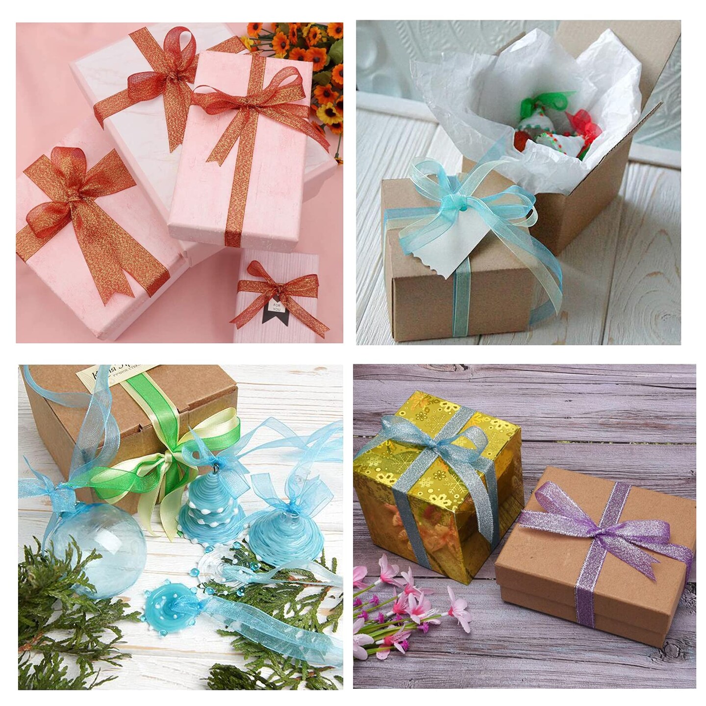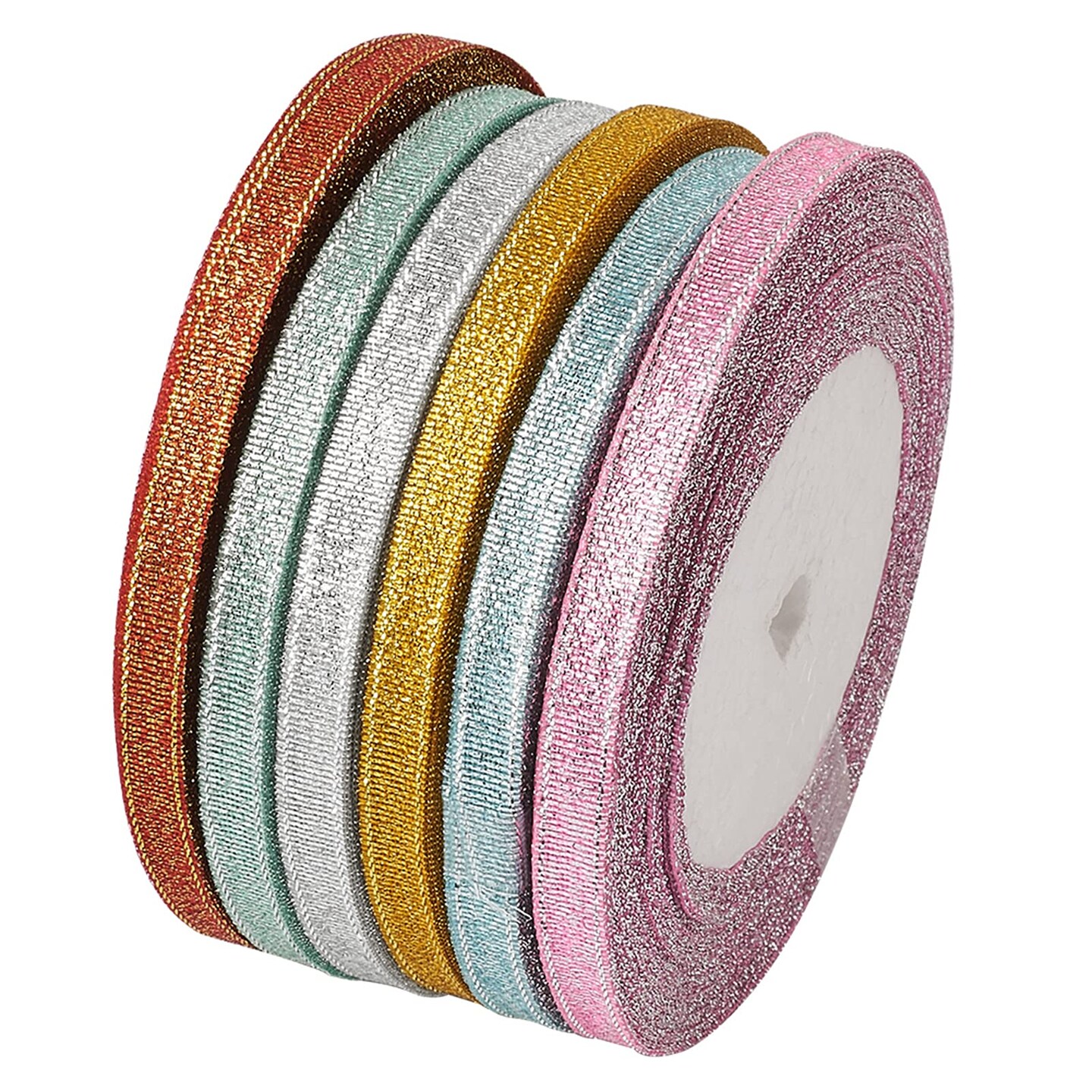 6 Rolls 198 Yards Sparkly Glitter Fabric Ribbon 1/4-Inch 6mm Metallic Sheer Organza Ribbon 6 Colors for Jewelry Bows Making Party Wedding Present Package Wrapping