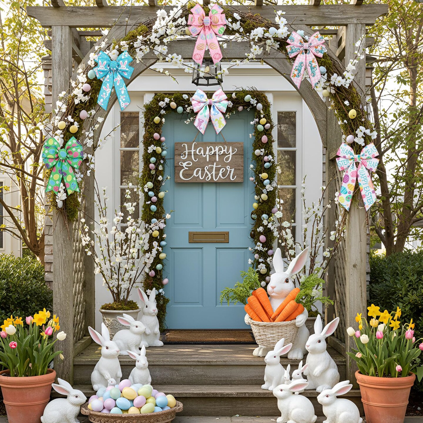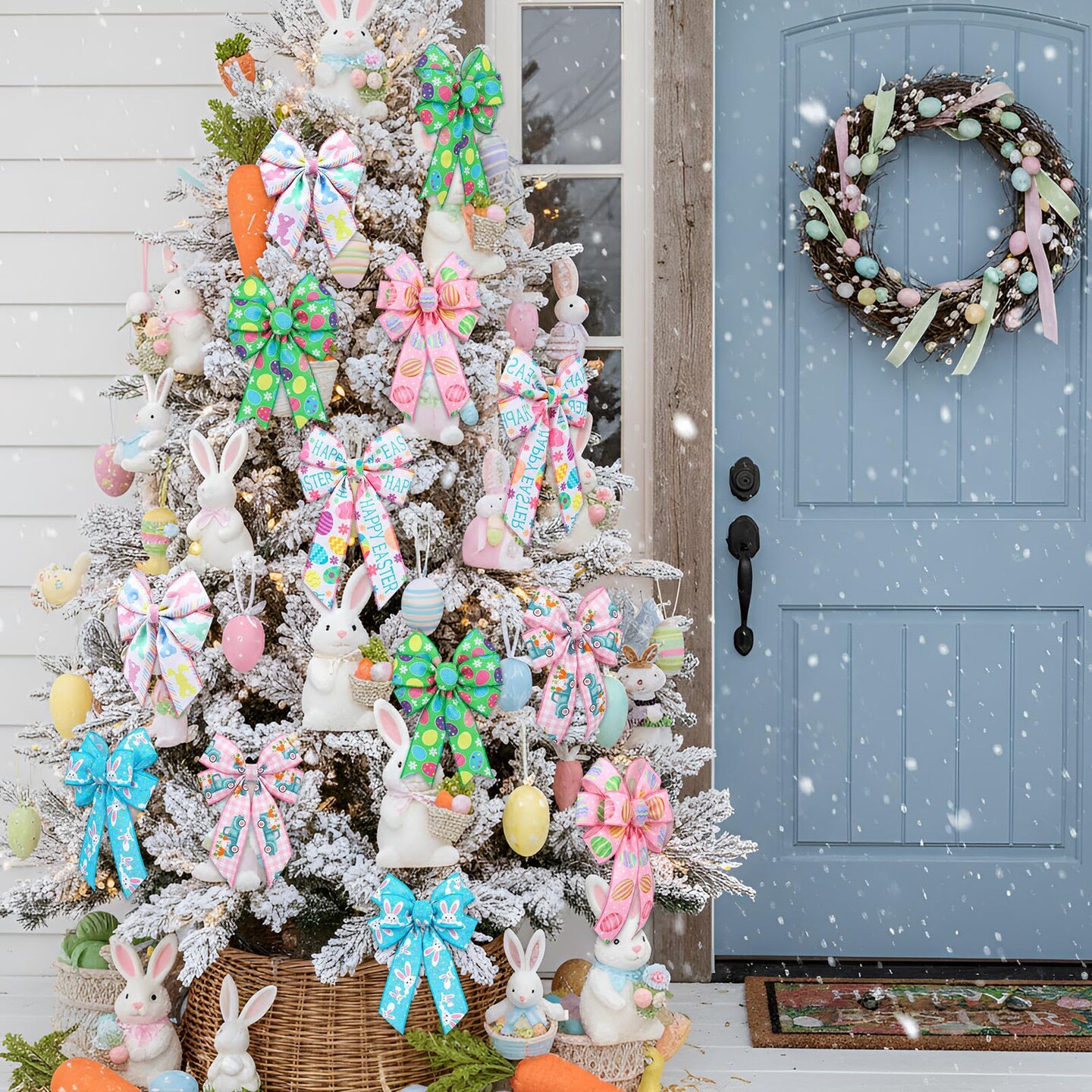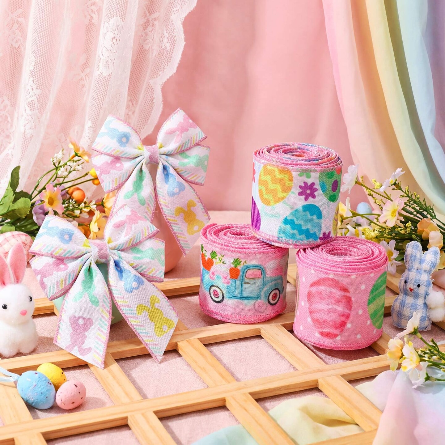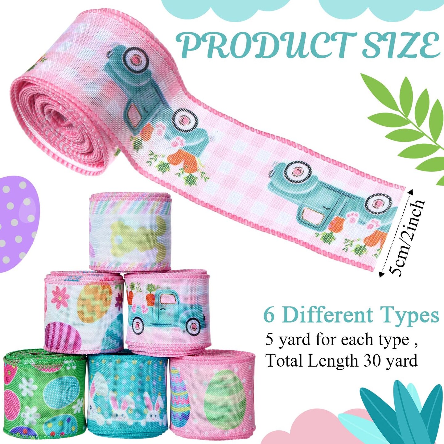 6 Rolls 30 Yards Easter Wired Edge Ribbons Colorful Easter Egg Bunny Rabbit Carrot Truck Fabric Burlap Ribbons for Spring Holiday Decorations Gift Wrapping Wreath Bows DIY Crafts Making, 2 Inch