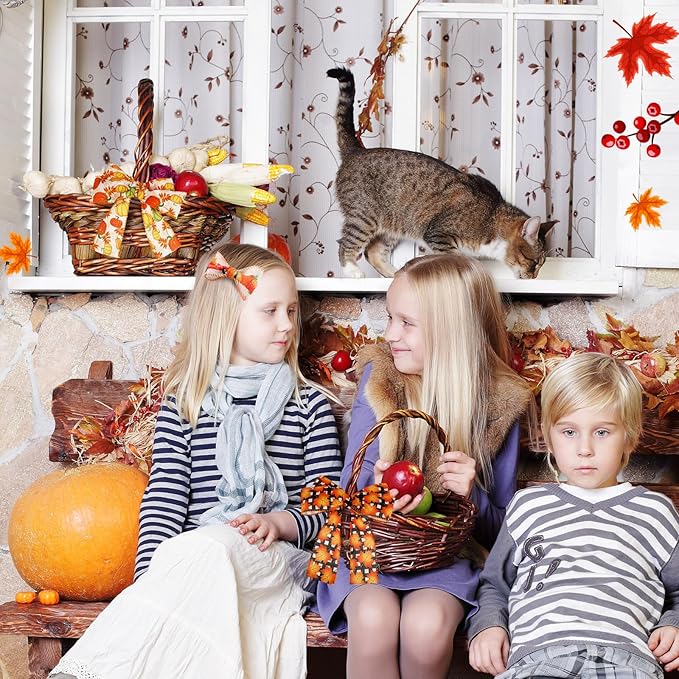 6 Rolls 30 Yards of Fall Burlap Ribbon Rolls Wired Wrapping Ribbon Buffalo Plaid Pumpkin Truck Turkey Maple Harvest Fall Ribbon Thanksgiving Wreath Decoration for Autumn Craft Bow Gift Making