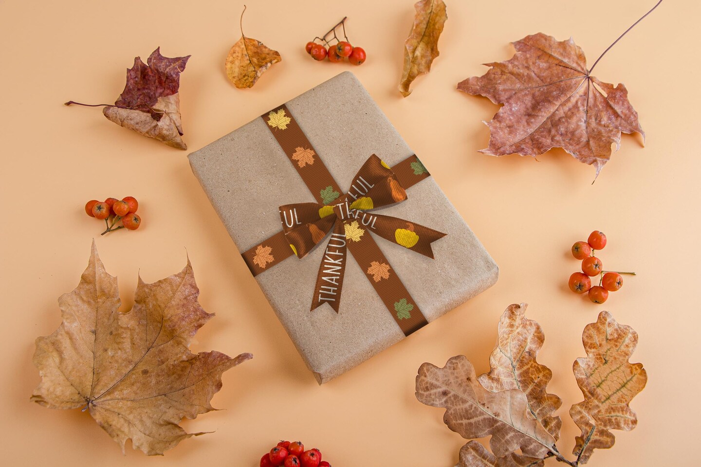 6 Rolls 30 Yards Thanksgiving Fall Ribbons Autumn Harvest Ribbons for Craft Wrapping Orange Pumpkin Maple Leaf Grosgrain Ribbon for Wreath Bows Thanksgiving Party Home Decoration 3/8 Inch
