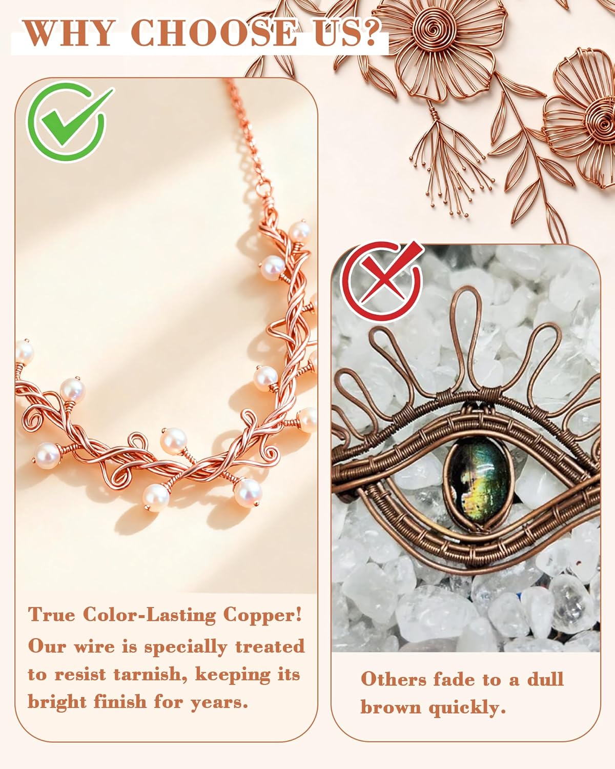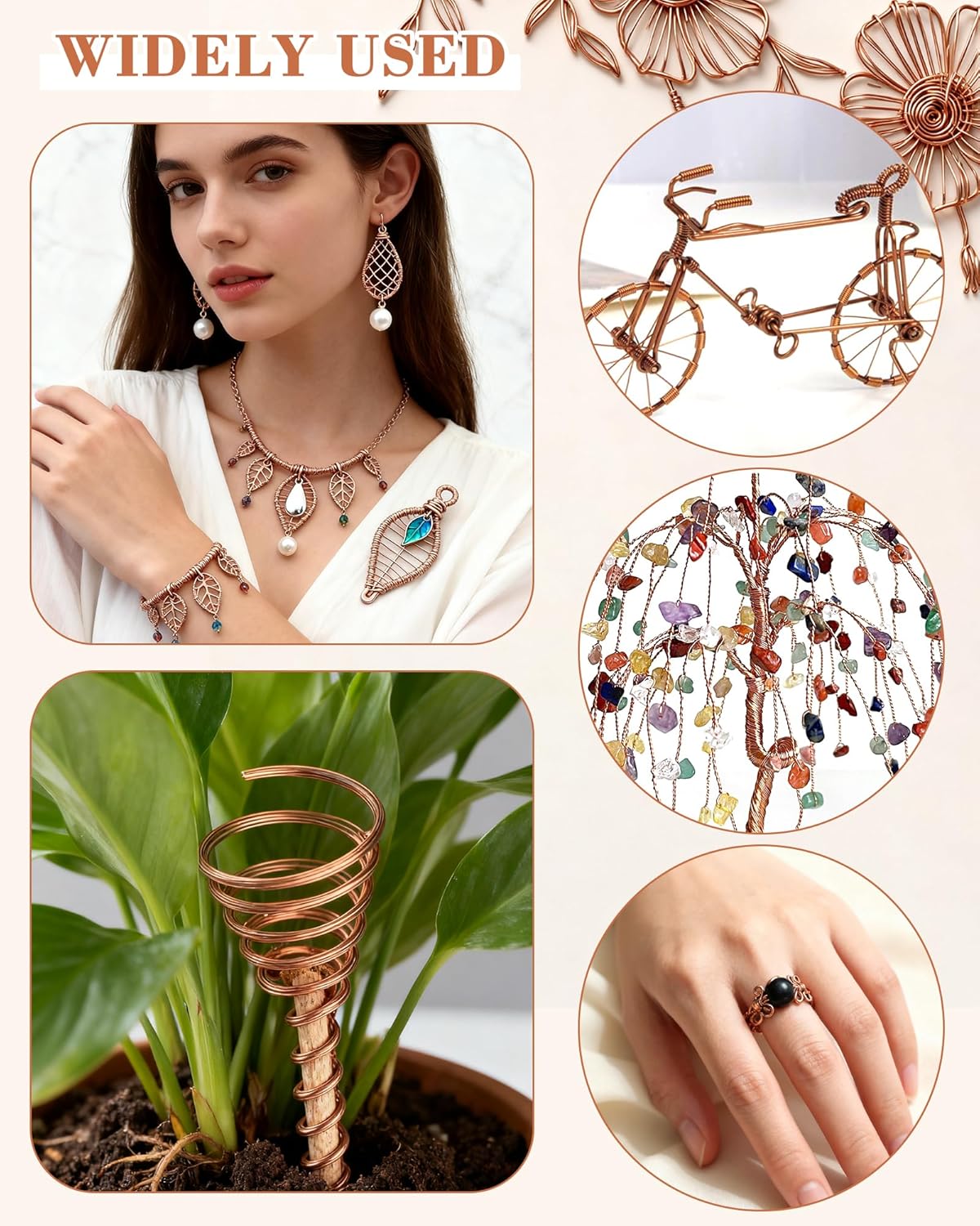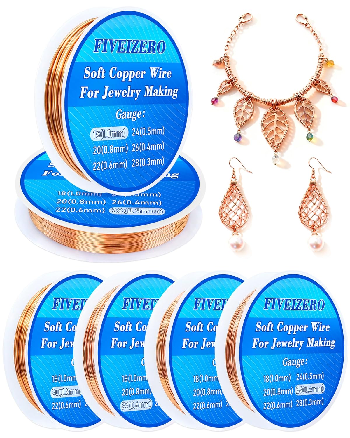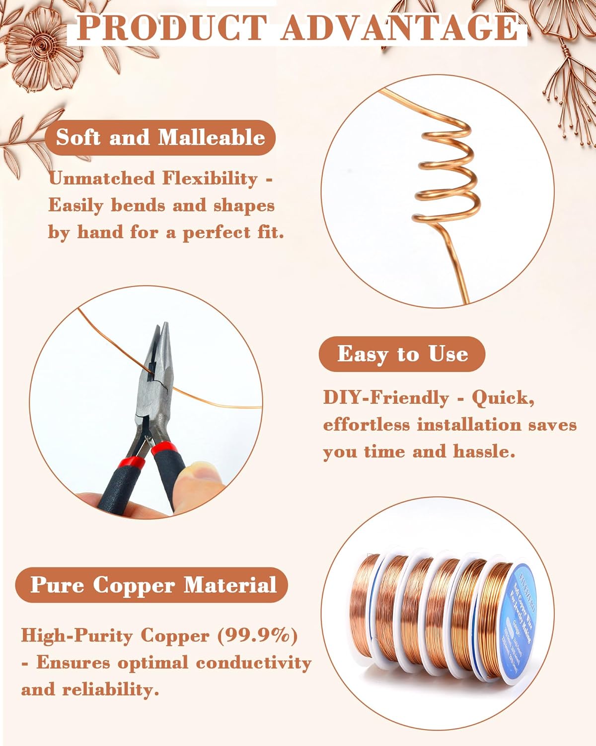 6 Rolls 6 Size Jewelry Making Copper Wire Kit - 18/20/22/24/26/28 Gauge Pure Dead Soft Bare Copper Wire for Electroculture Gardening, Crafting, Beading, Sculpting