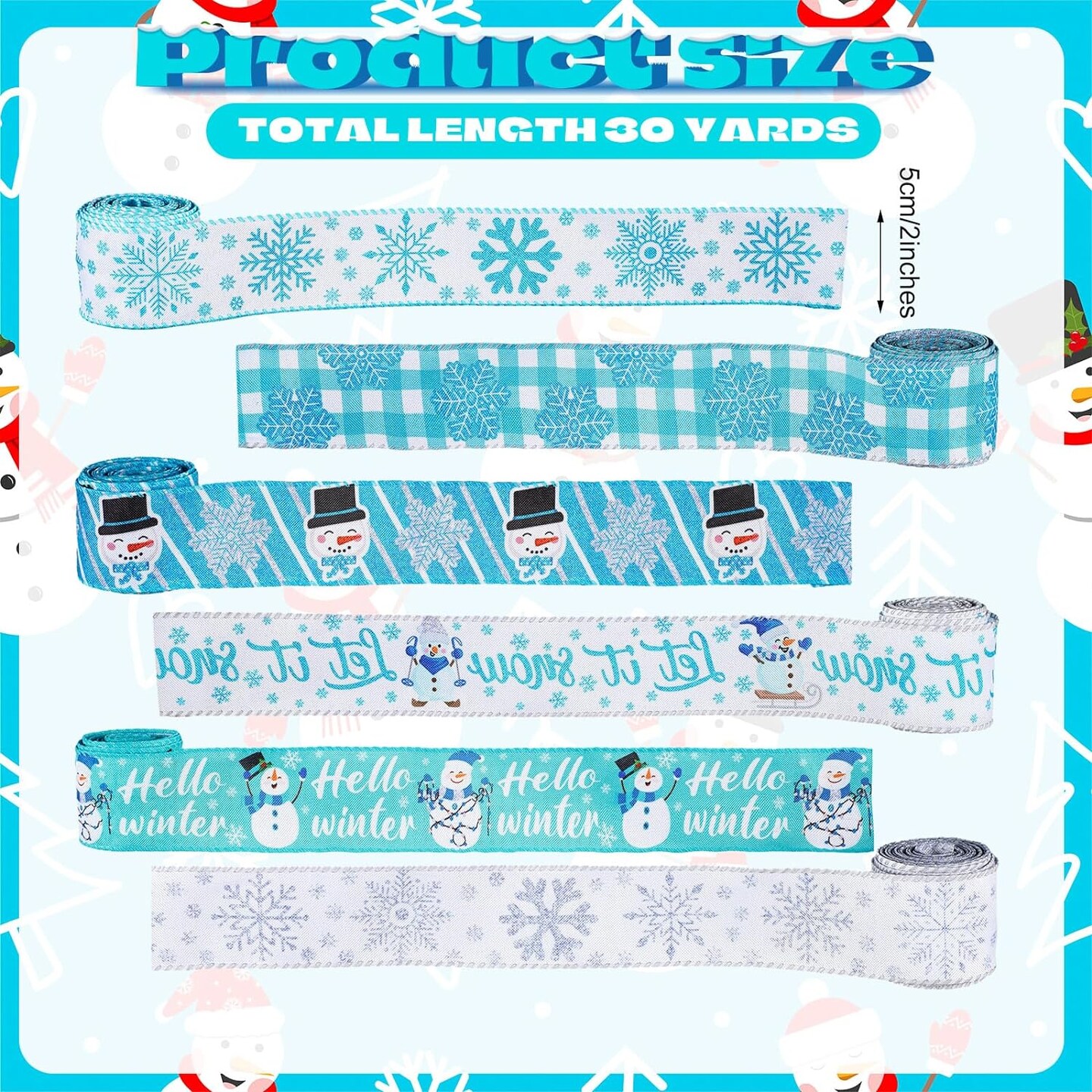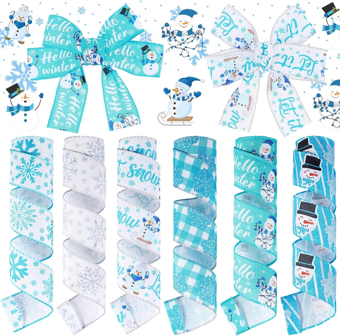 6 Rolls Snowflake Wired Ribbon