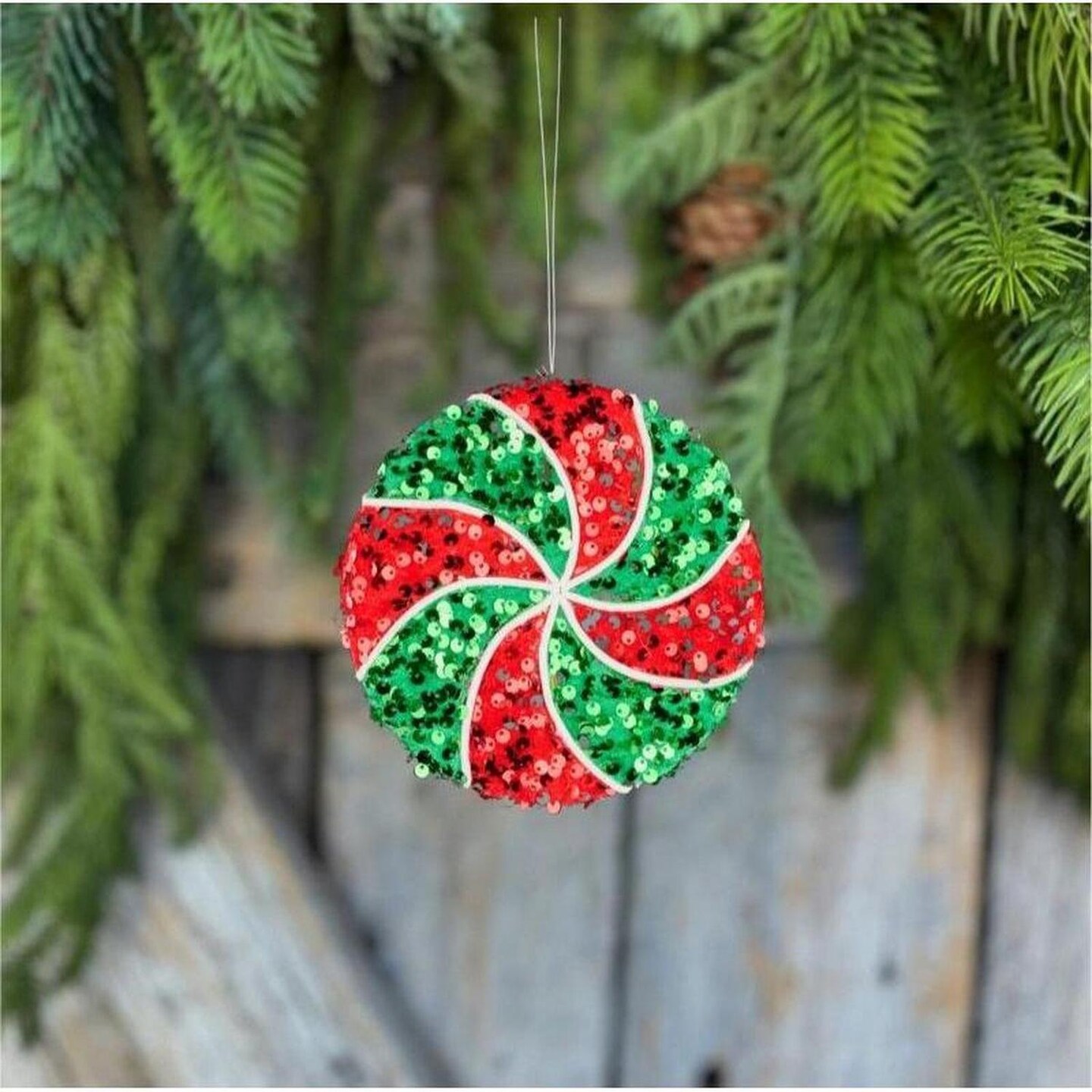 6" Sequin Peppermint Ornament: Red/Green