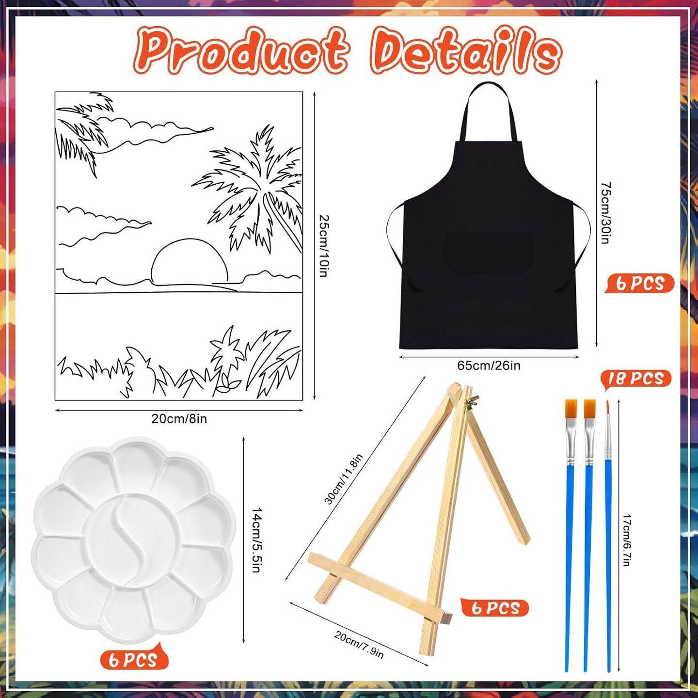 6 Set Pre Drawn Canvas for Painting for Adults Sip and Paint Kit with Easels 8 x 10 Inches Paint Party Kit with Printed Canvas Paints Brushes Palette Apron(Seaside Sunset)