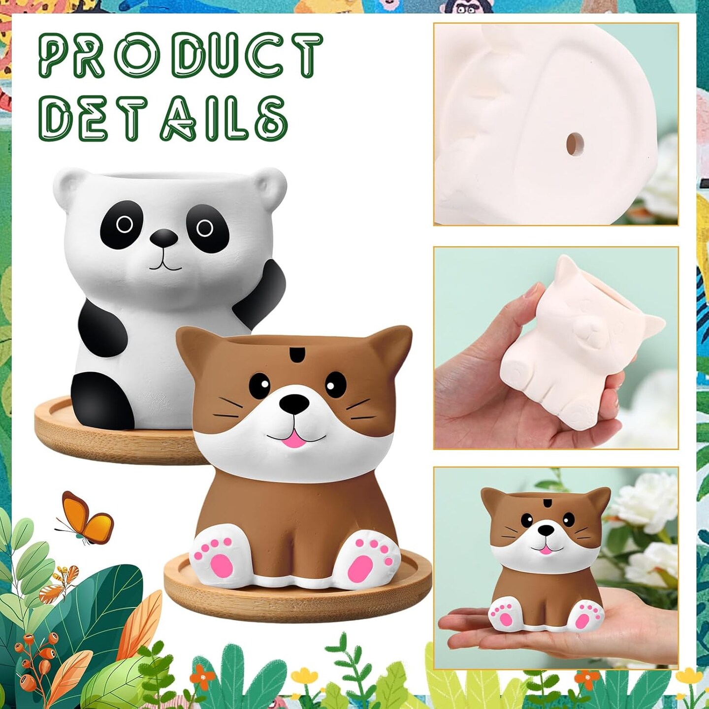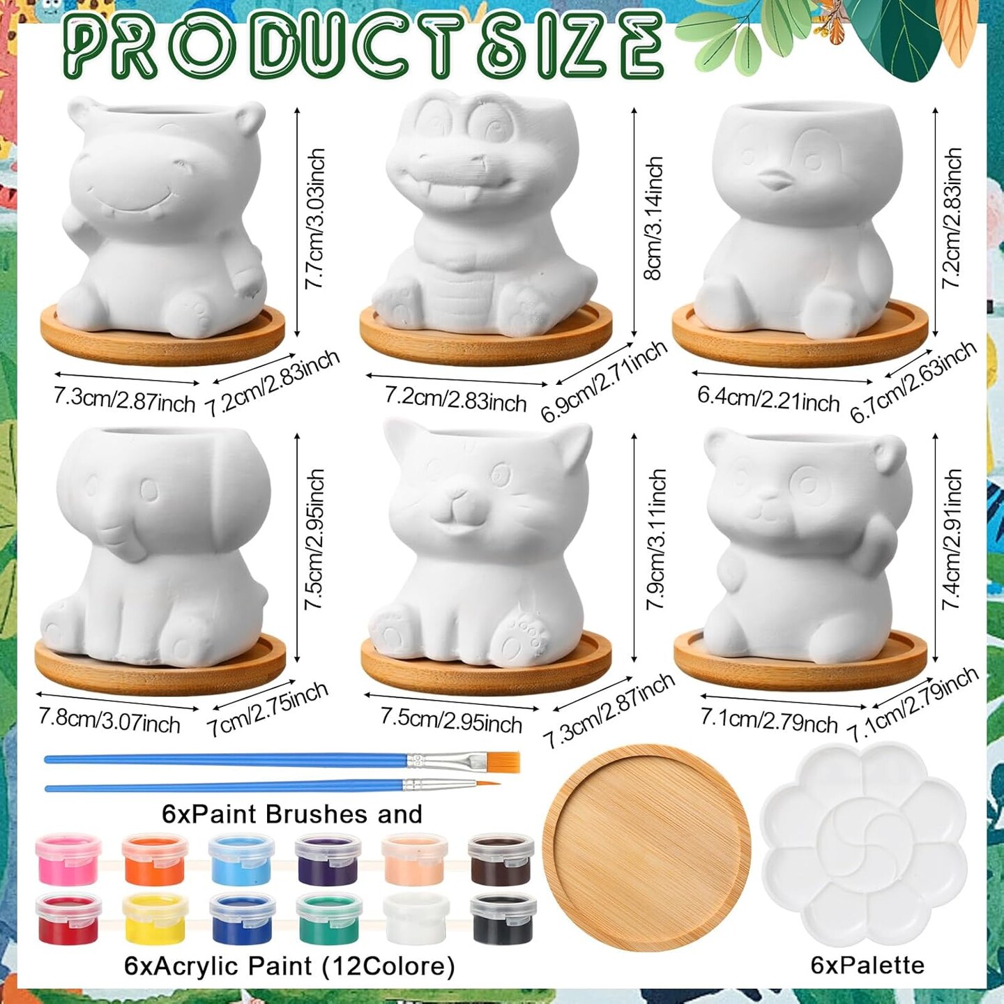 6 Sets Ceramic Succulent Pots Paint Craft Kit (Cute Animal)