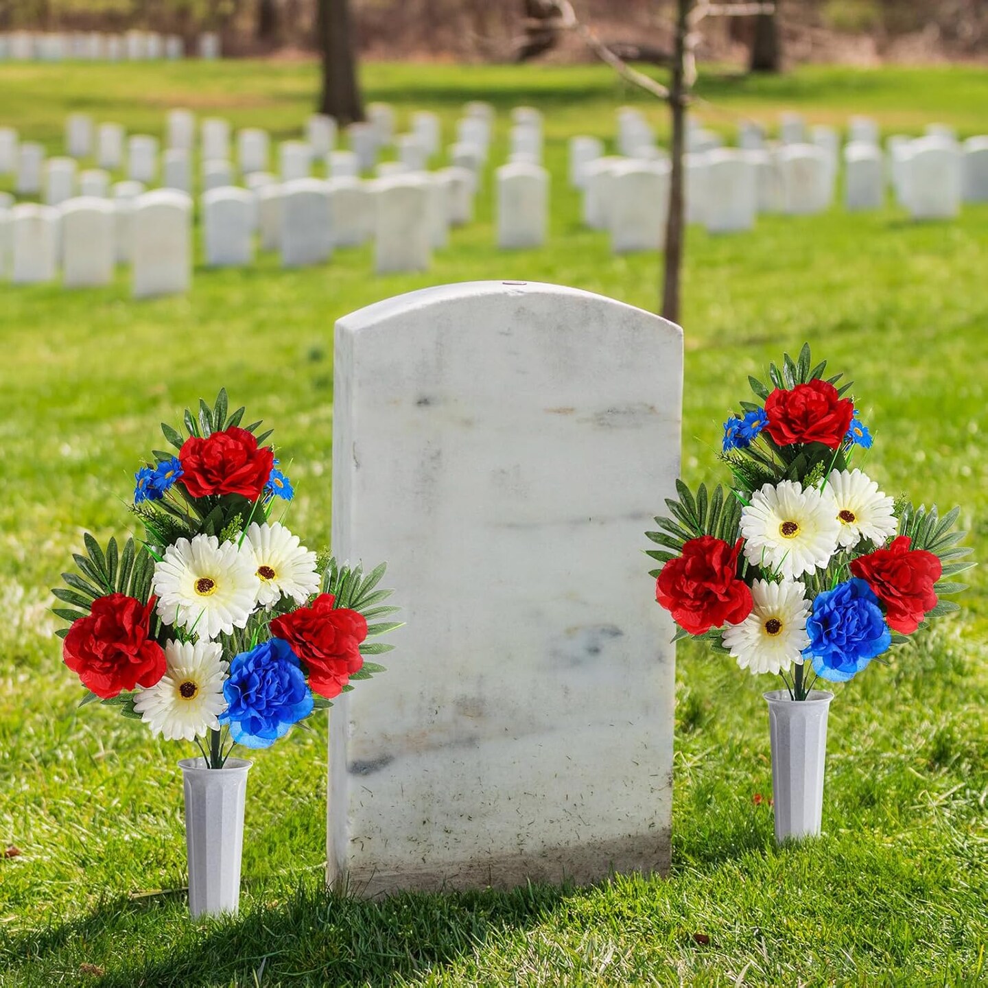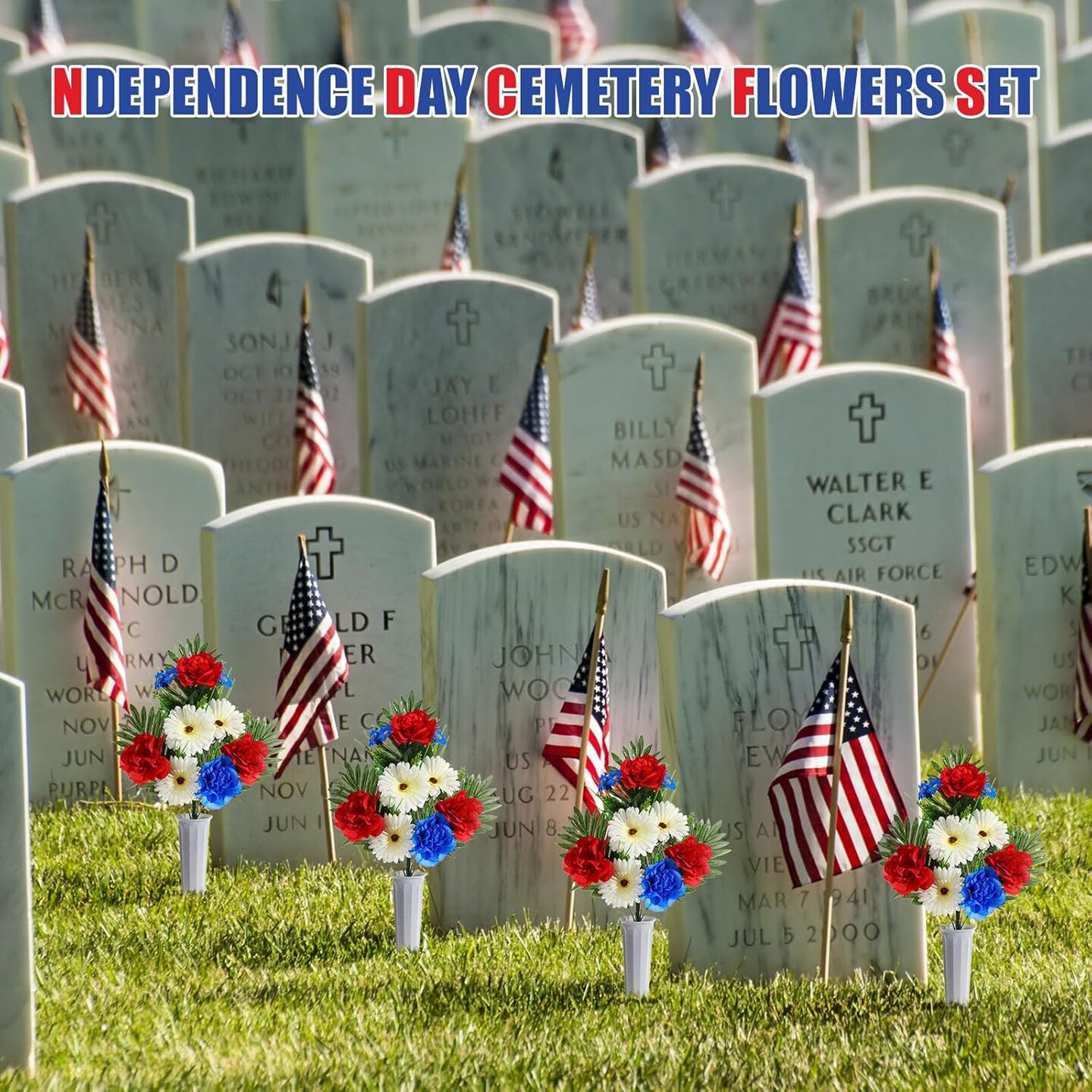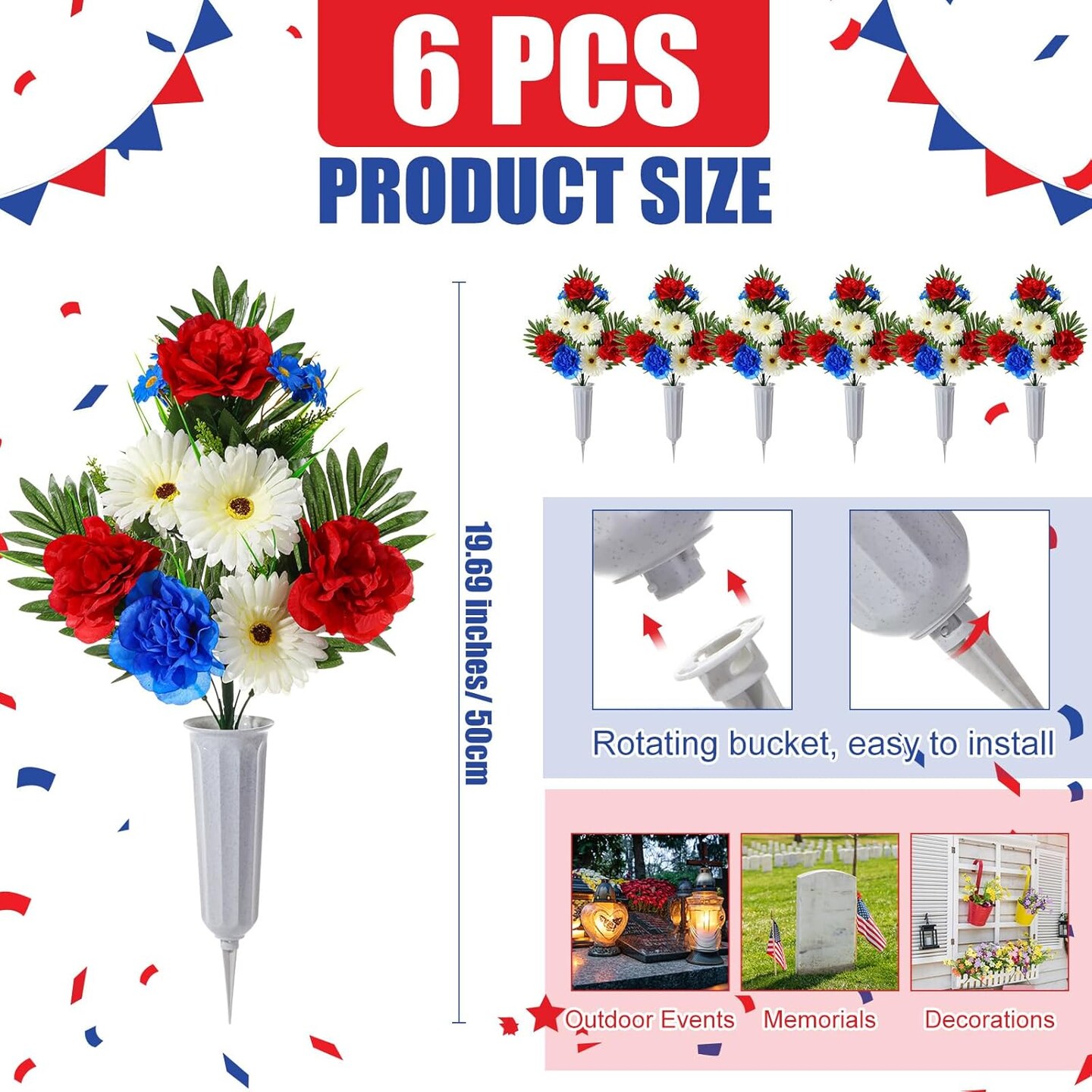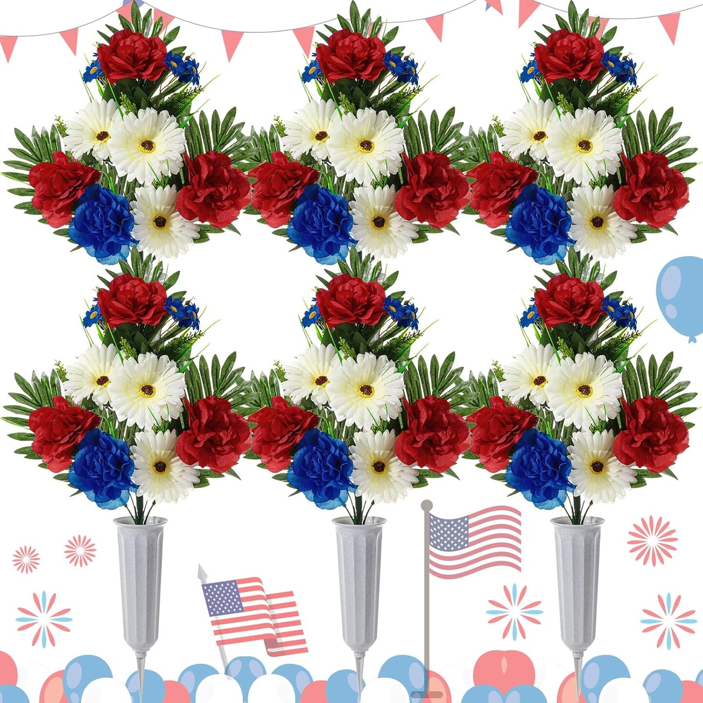 6 Sets Patriotic Memorial Bouquet with Vase Cemetery Flowers