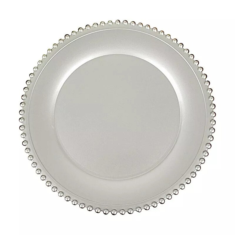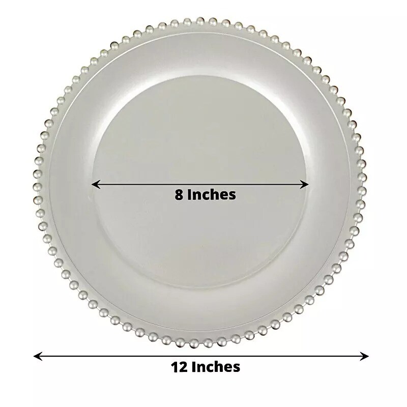 6 Silver 12" Round Beaded Rim Charger Plates