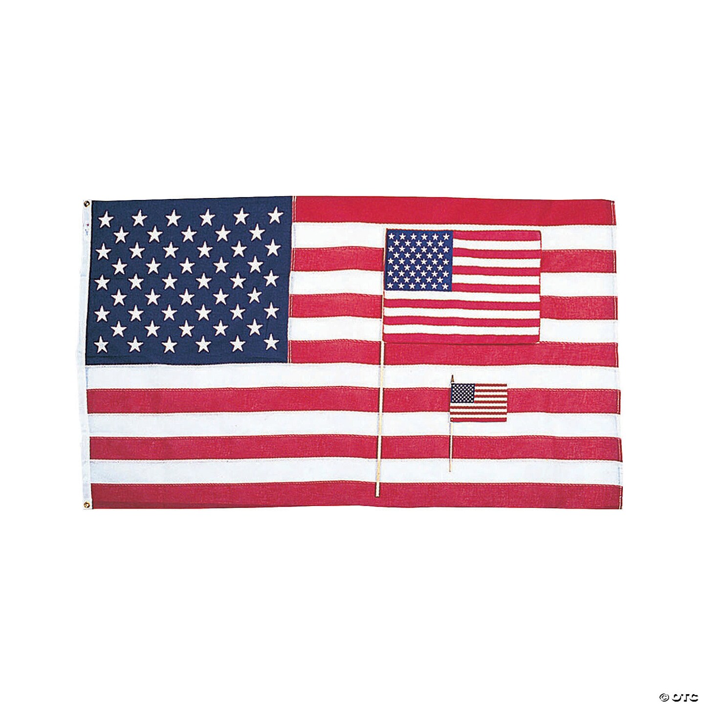 6" x 4" Small Cloth American Flags on Wooden Sticks - 12 Pc.