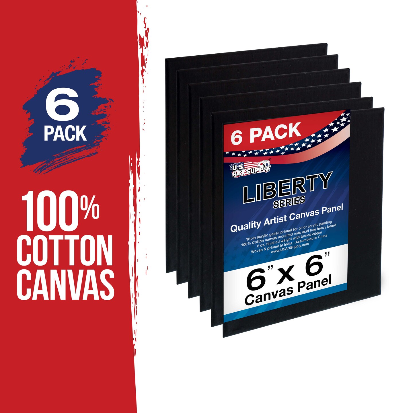 6 X 6 Inch Black Professional Art Canvas Board Panels 6 Pack - 8 Ounce Heavyweight Cotton Acid Free Canvases for Painting Acrylics and Watercolor (1 Case of 6 Single Canvas Painting Panels)