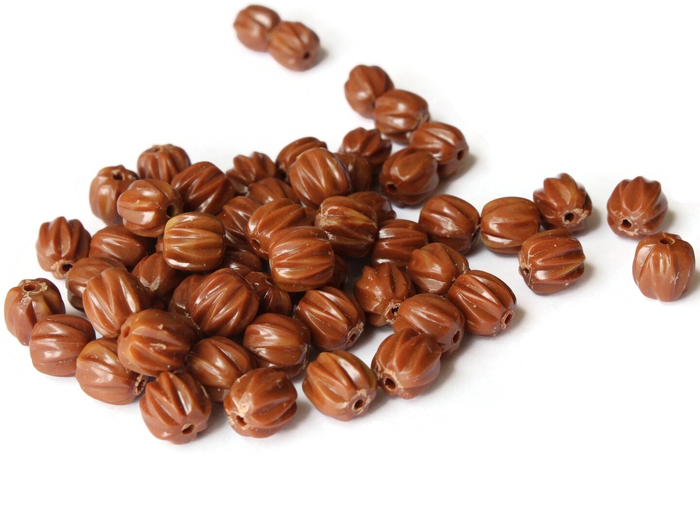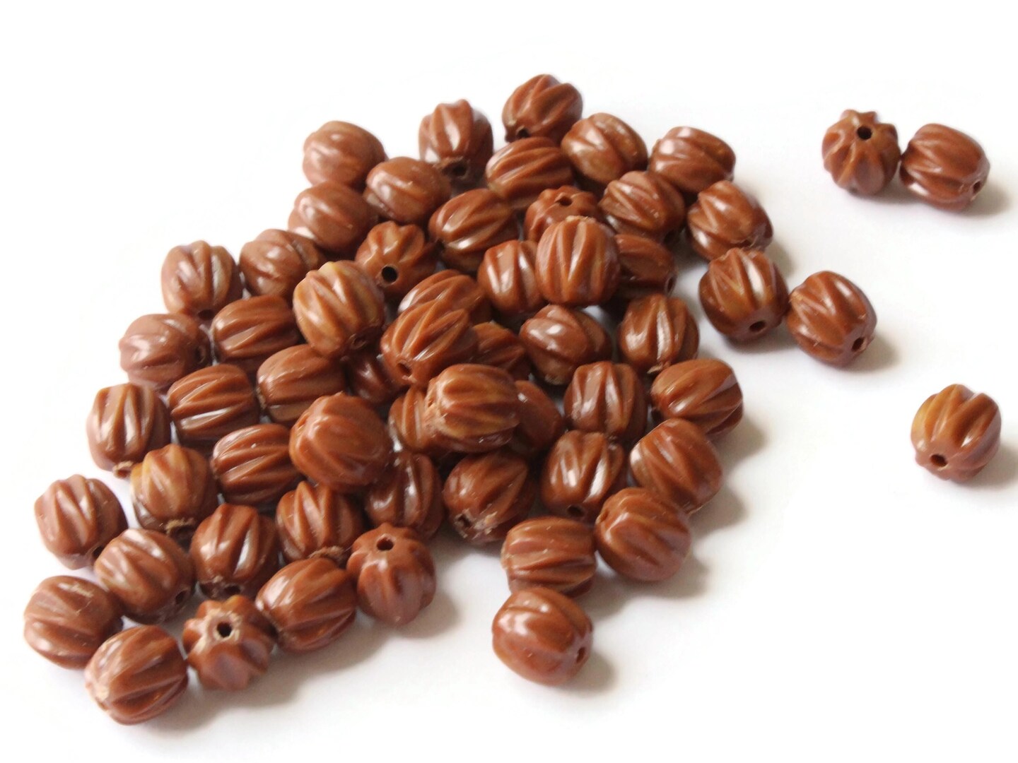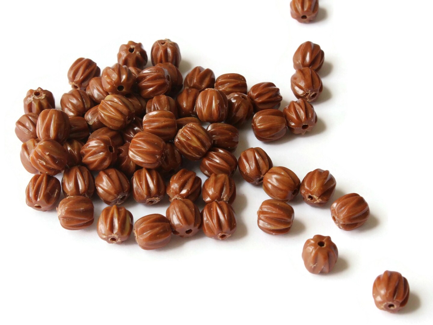 60 8mm Brown Vintage Plastic Round Ridged Beads