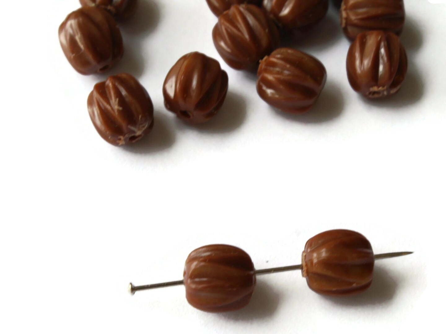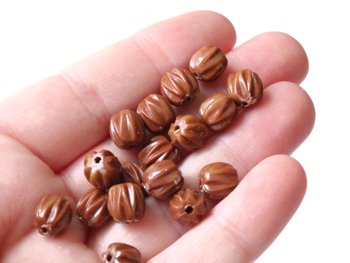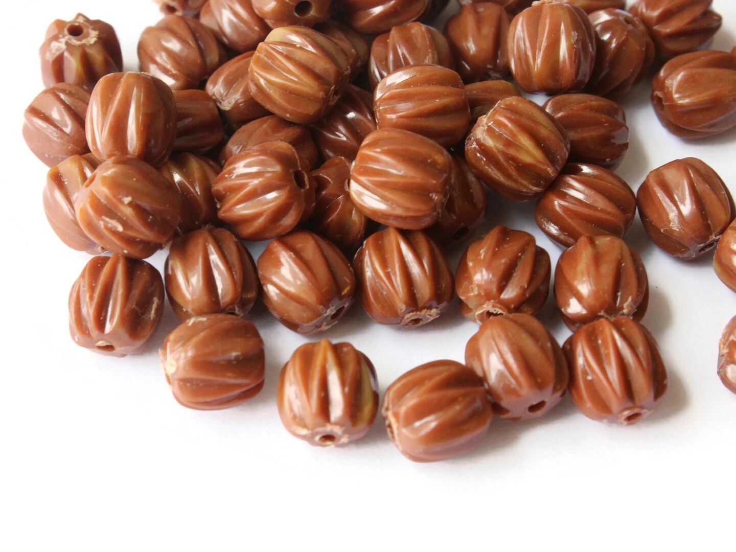 60 8mm Brown Vintage Plastic Round Ridged Beads