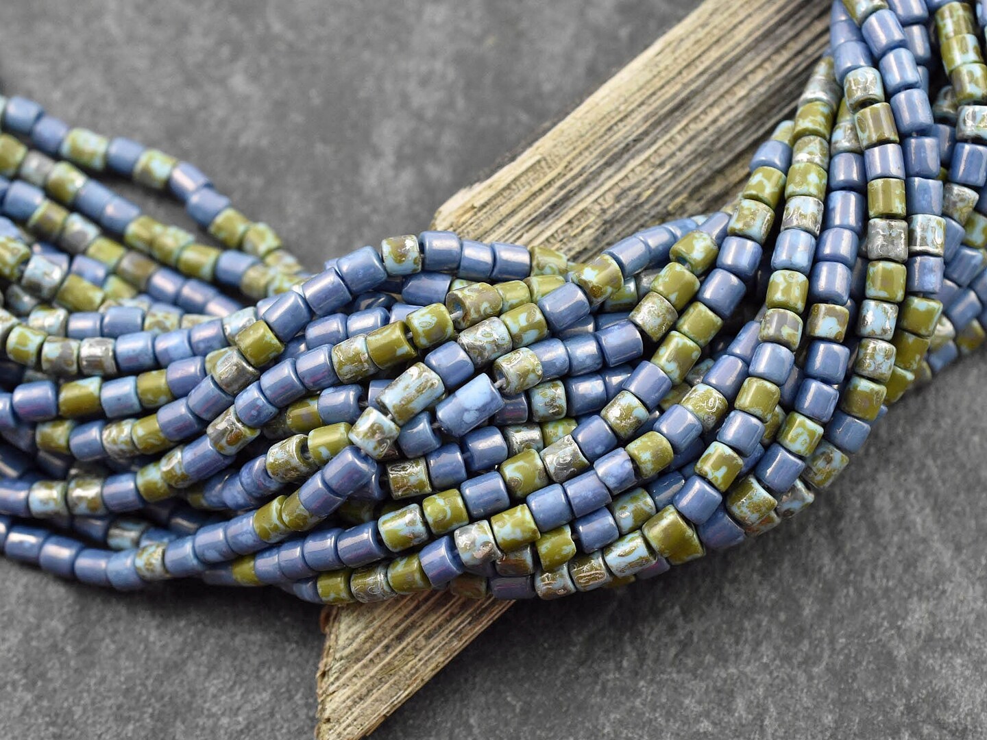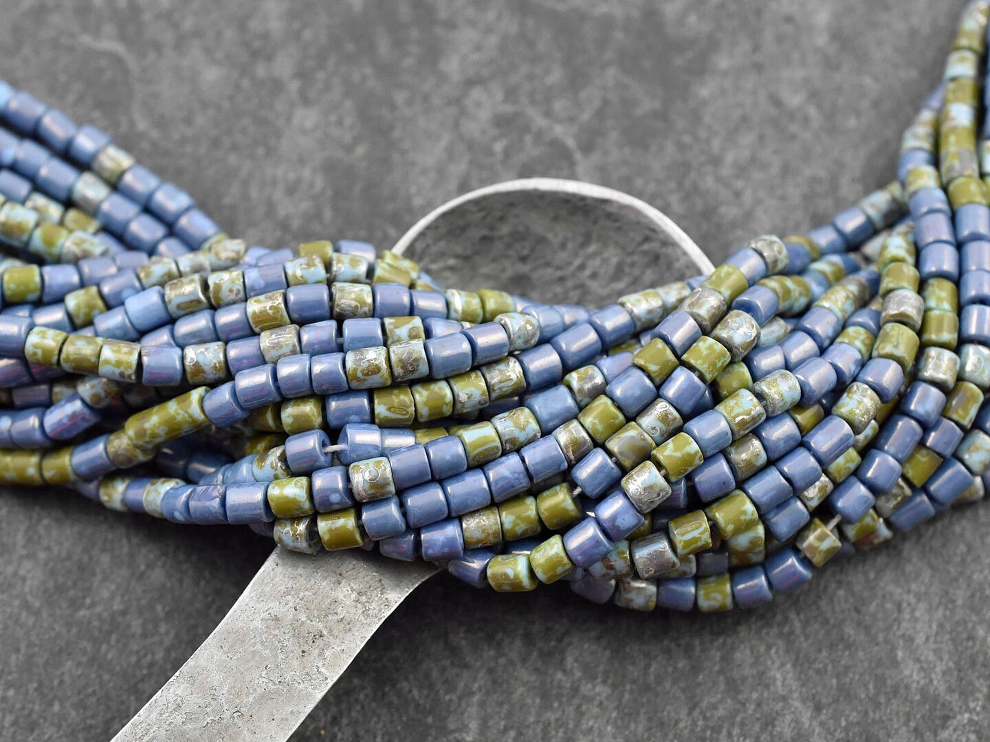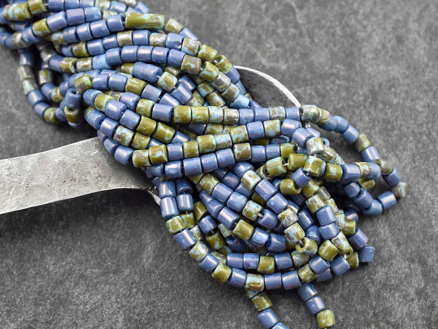 6/0 Aged Blue Turquoise Picasso Bugle Beads (20" Strand)