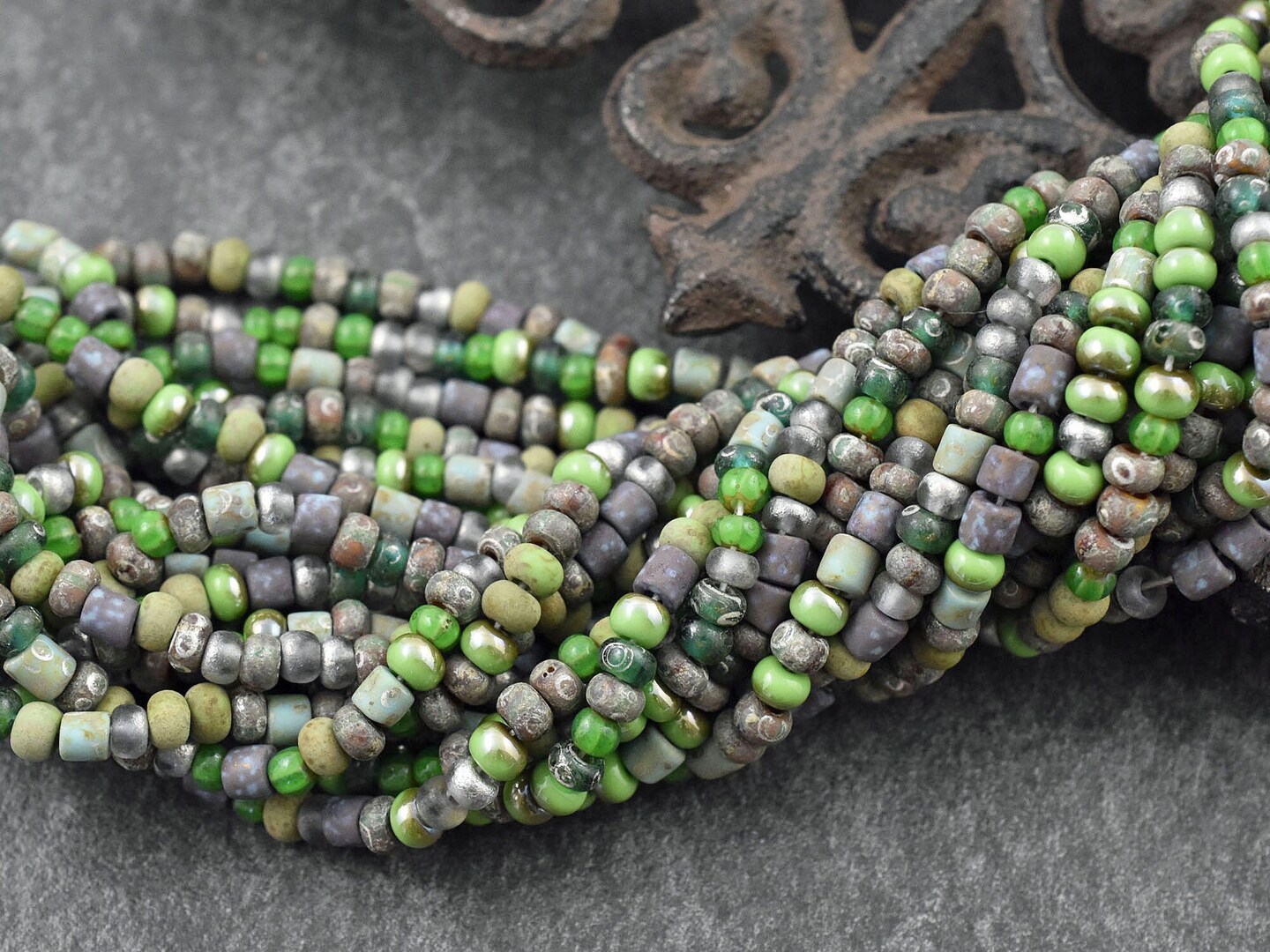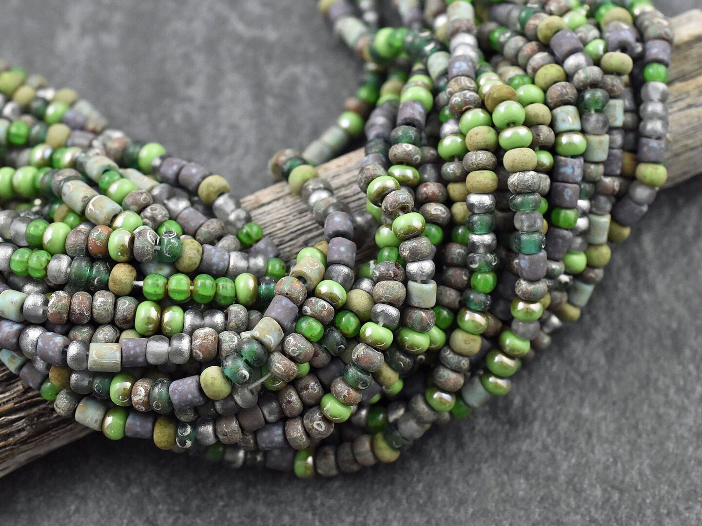 6/0 Aged Matte Green Envy Picasso Seed Bead Tube Mix (20" Strand)