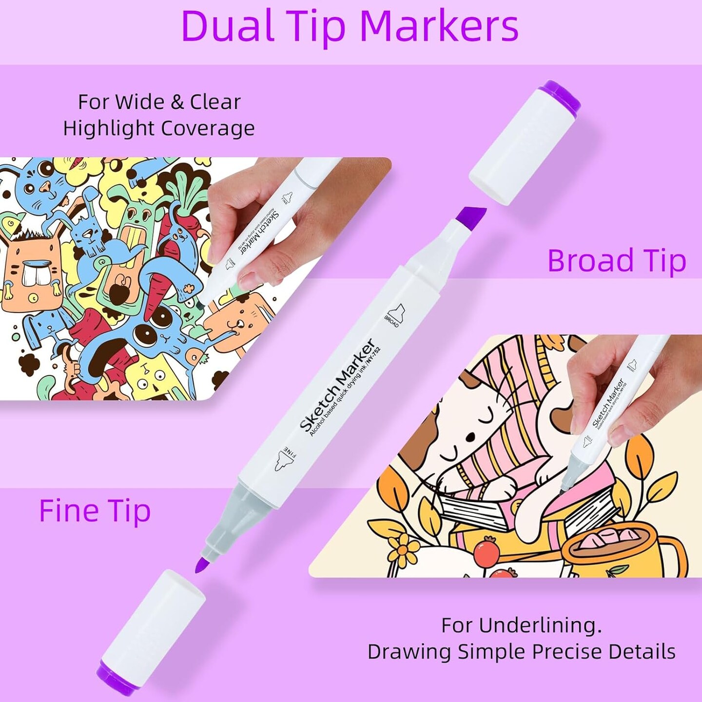 60 Alcohol Markers – Dual Tip Art Markers for Adults, Coloring, Illustration, Sketching, Painting, Card Making