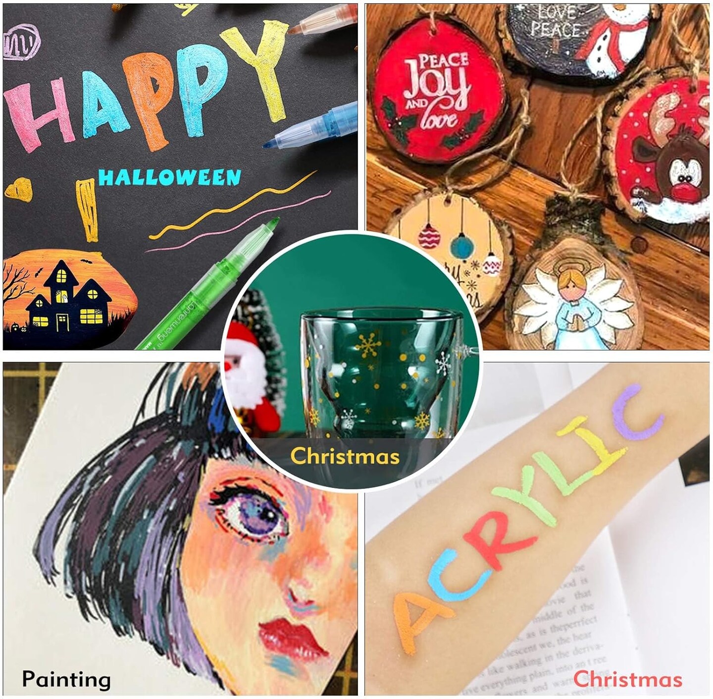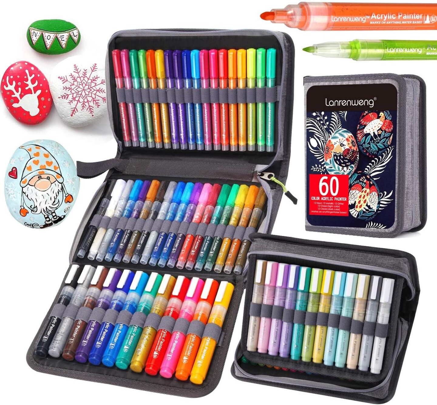 60 Colors Acrylic Paint Markers Premium Acrylic Paint Pens ,Art Markers Pens for Rock Painting, Wood, Canvas, Stone, Glass, Ceramic Surfaces, DIY Crafts Making Art Supplies (Round Tip and Fine Tip)