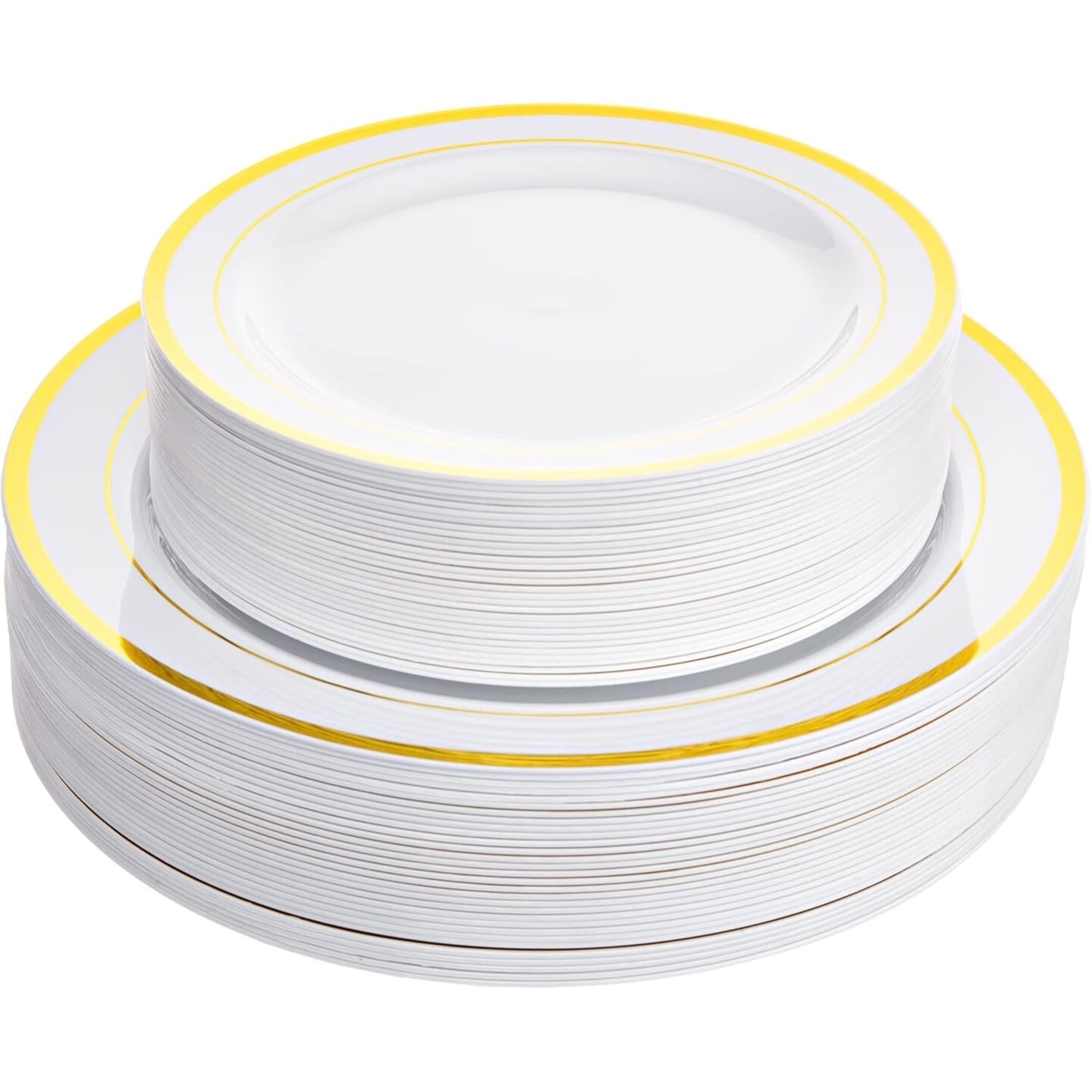60 Gold Heavy Duty Disposable Rimmed Plastic Plates, 30 Dinner + 30 Dessert