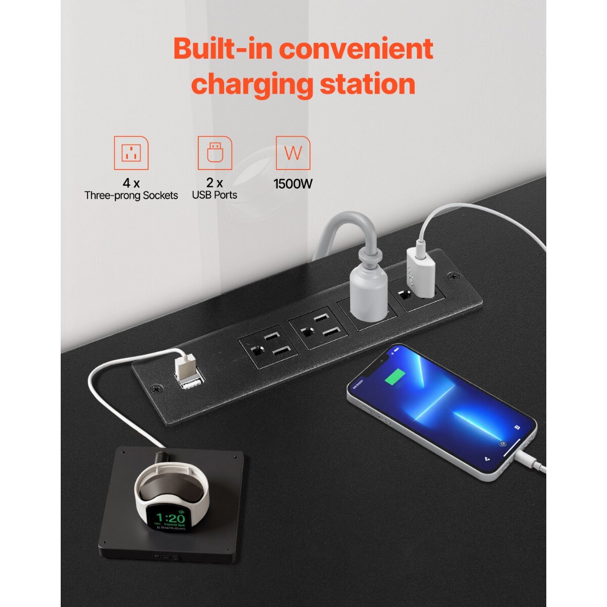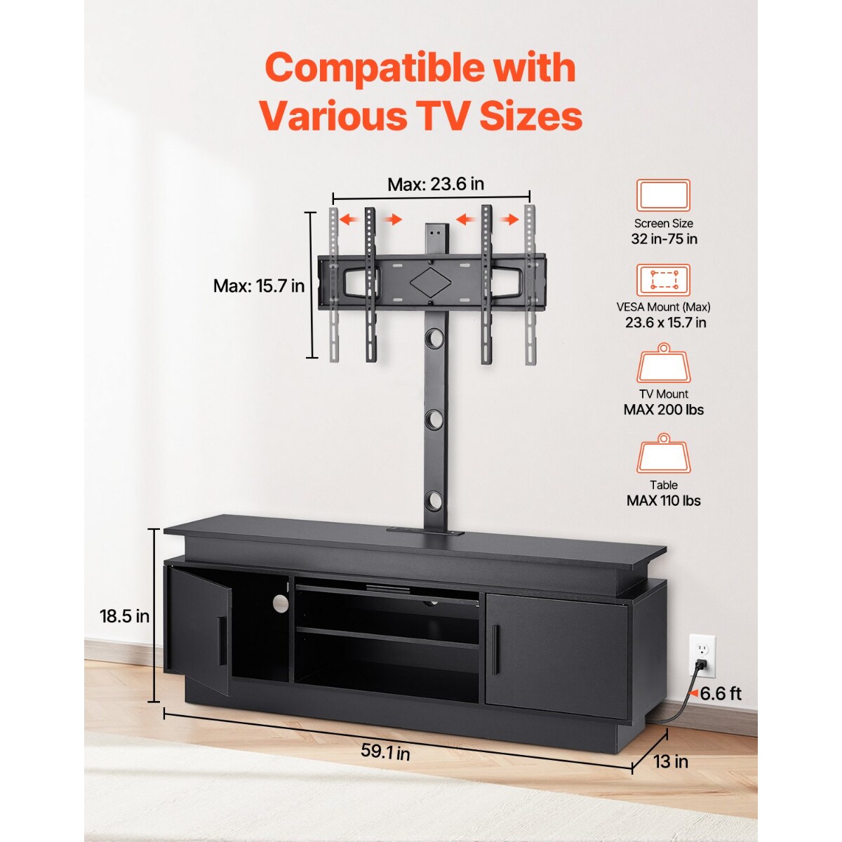 60 Inch TV Stand with Mount, LED Lights & Power Outlet, Adjustable Height