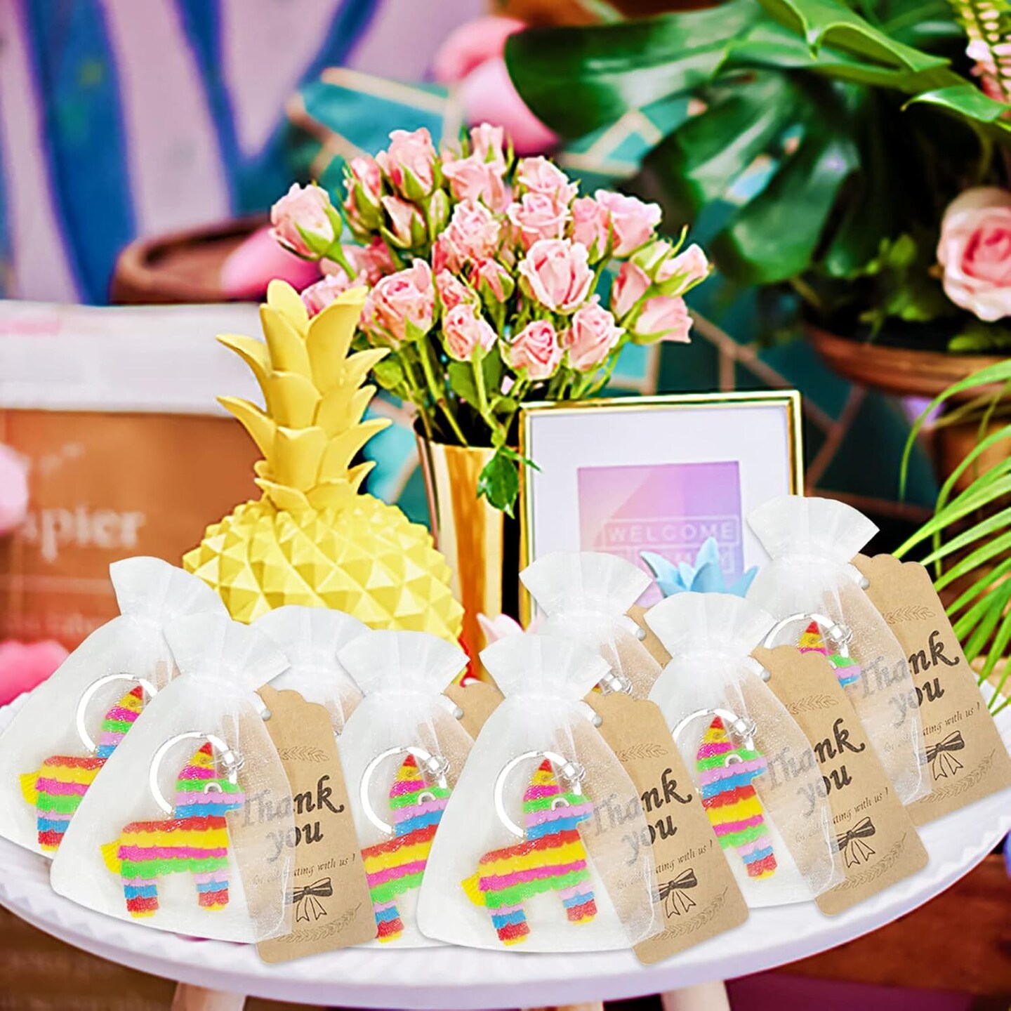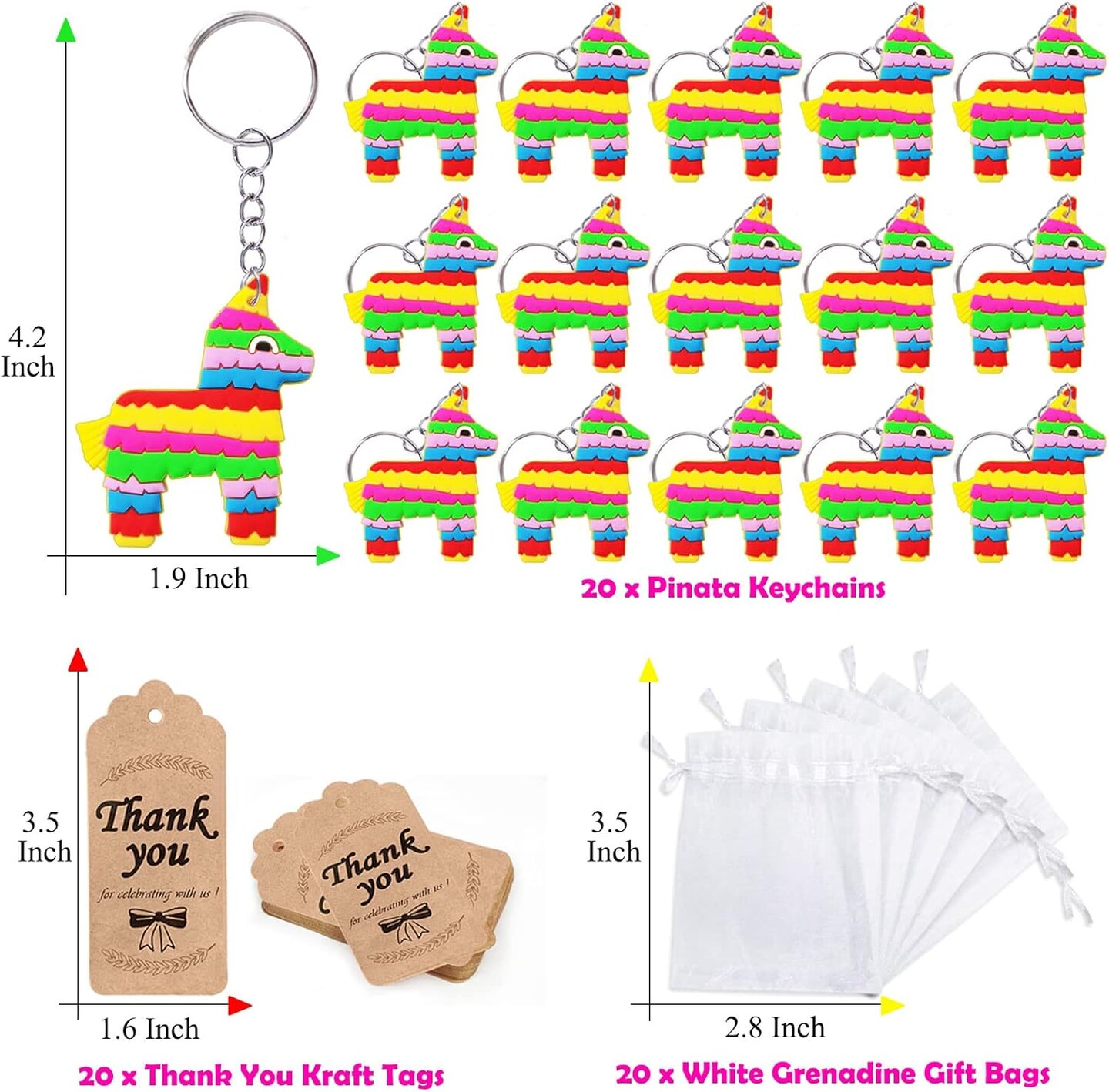 60 Pack Mexico Donkey Party Favor Set – 20 Donkey Keychains, 20 Kraft Thank You Tags & 20 Gift Bags – Mexican Fiesta Cinco de Mayo Birthday & Bachelorette Party Supplies – Perfect for Mother's Day Card Making Displays