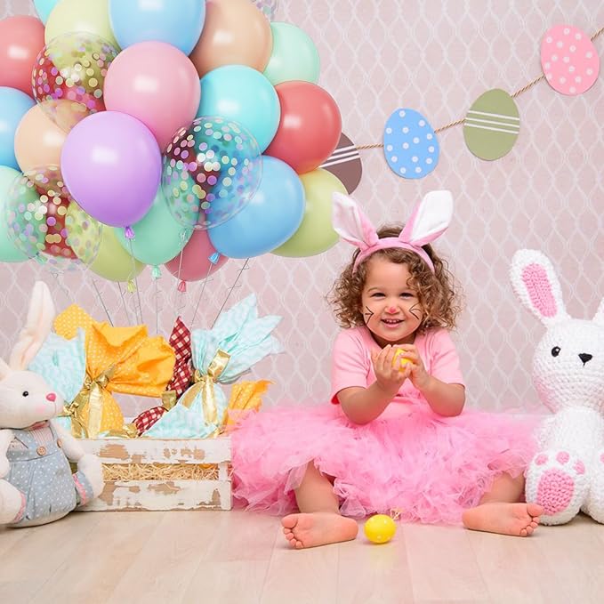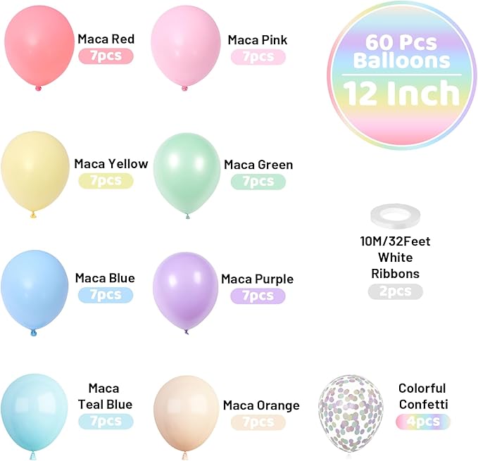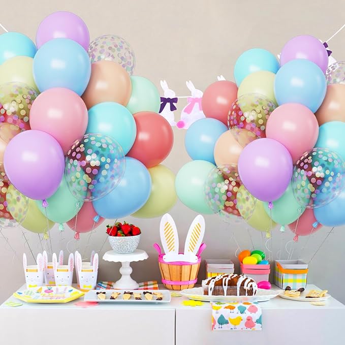 60 Pack Pastel Balloons (12 Inch) – Macaron Pink, Blue, Purple & Yellow Latex Balloons with Colorful Confetti – Easter 2026 & Spring Party Decorations – Sweet One Birthday, Baby Shower & Bridal Shower Supplies – Thickened Helium Grade Balloon Set