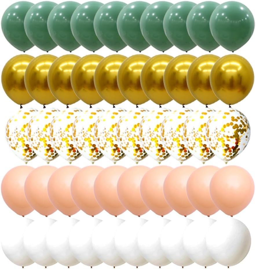 60 pcs 12 inch Green Latex Balloon Gold White Balloons Green Balloon Garland Kit Confetti Balloons for Women Birthday Wedding Engagement Bachelor Bridal Shower Party Decorations