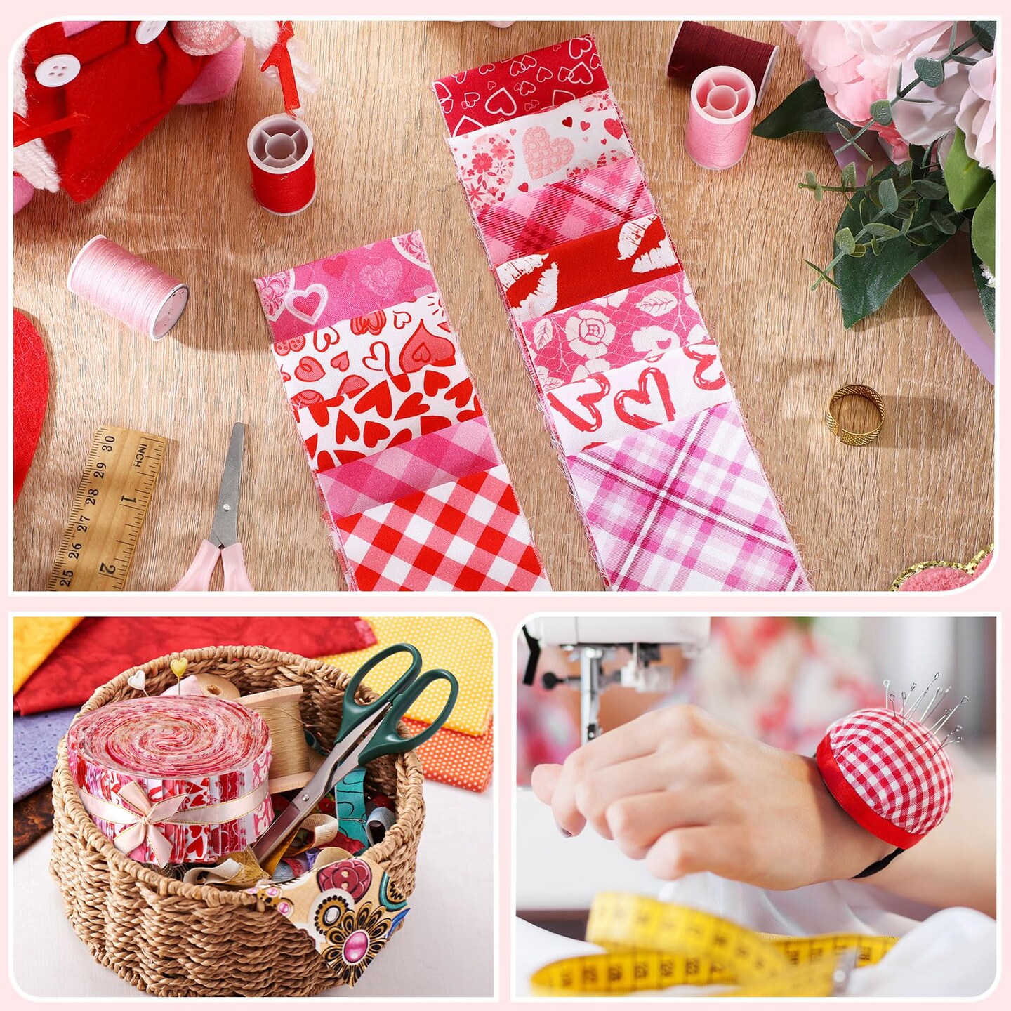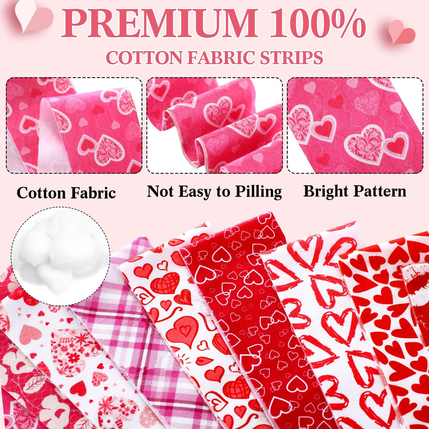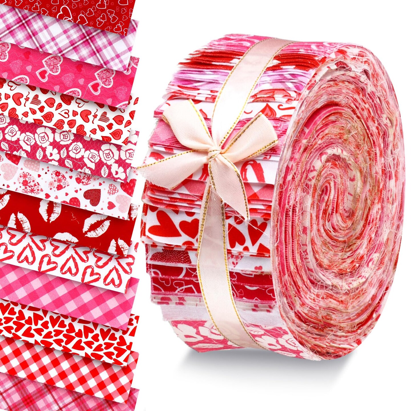 60 Pcs Cotton Jelly Valentine's Day Fabric Roll Heart Fabric Strips Valentine's Day Quilting Roll for Quilting Cloth Patchwork Sewing DIY Craft, 12 Styles