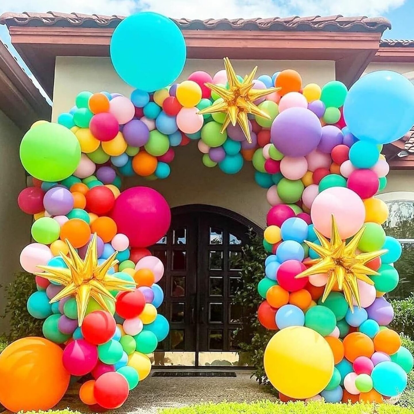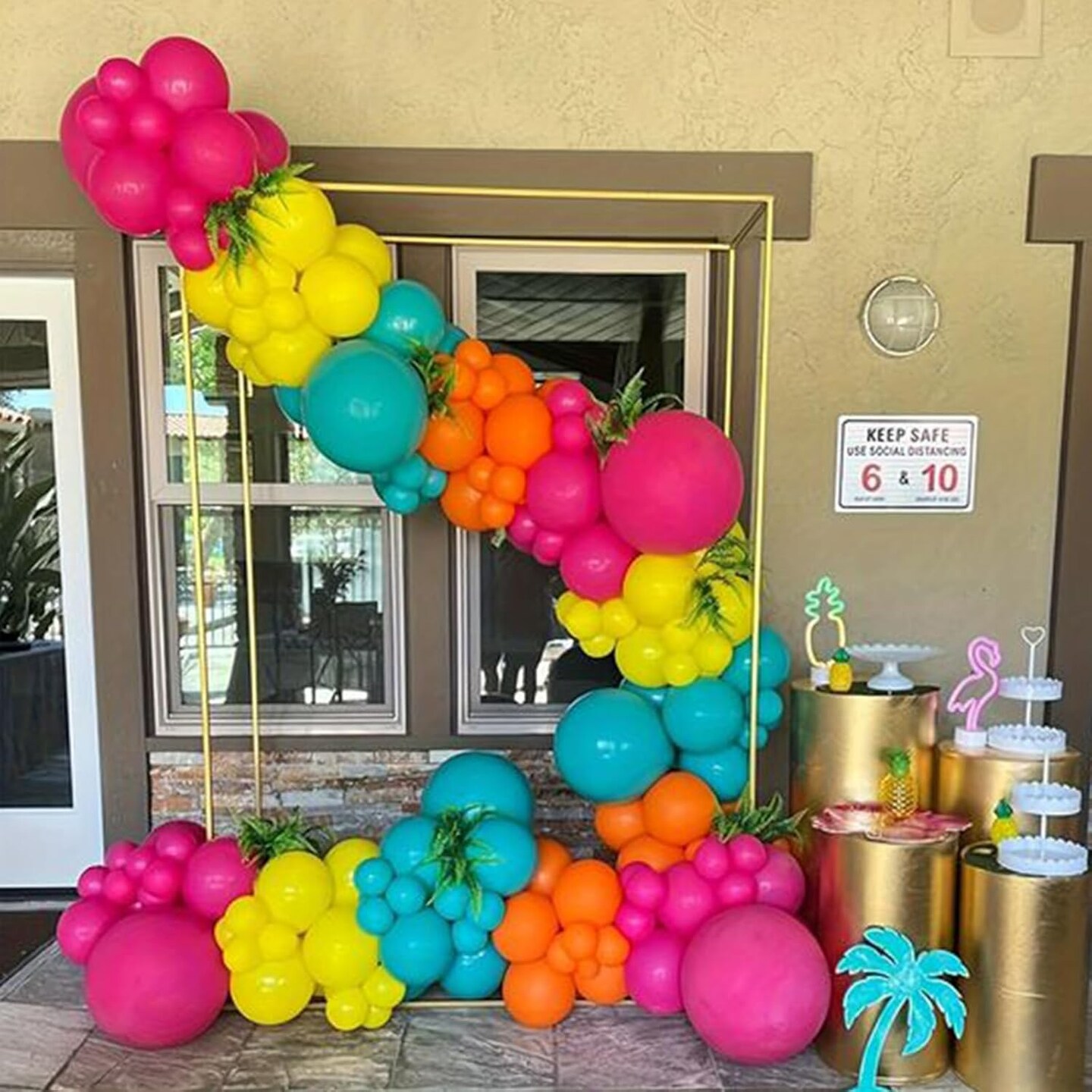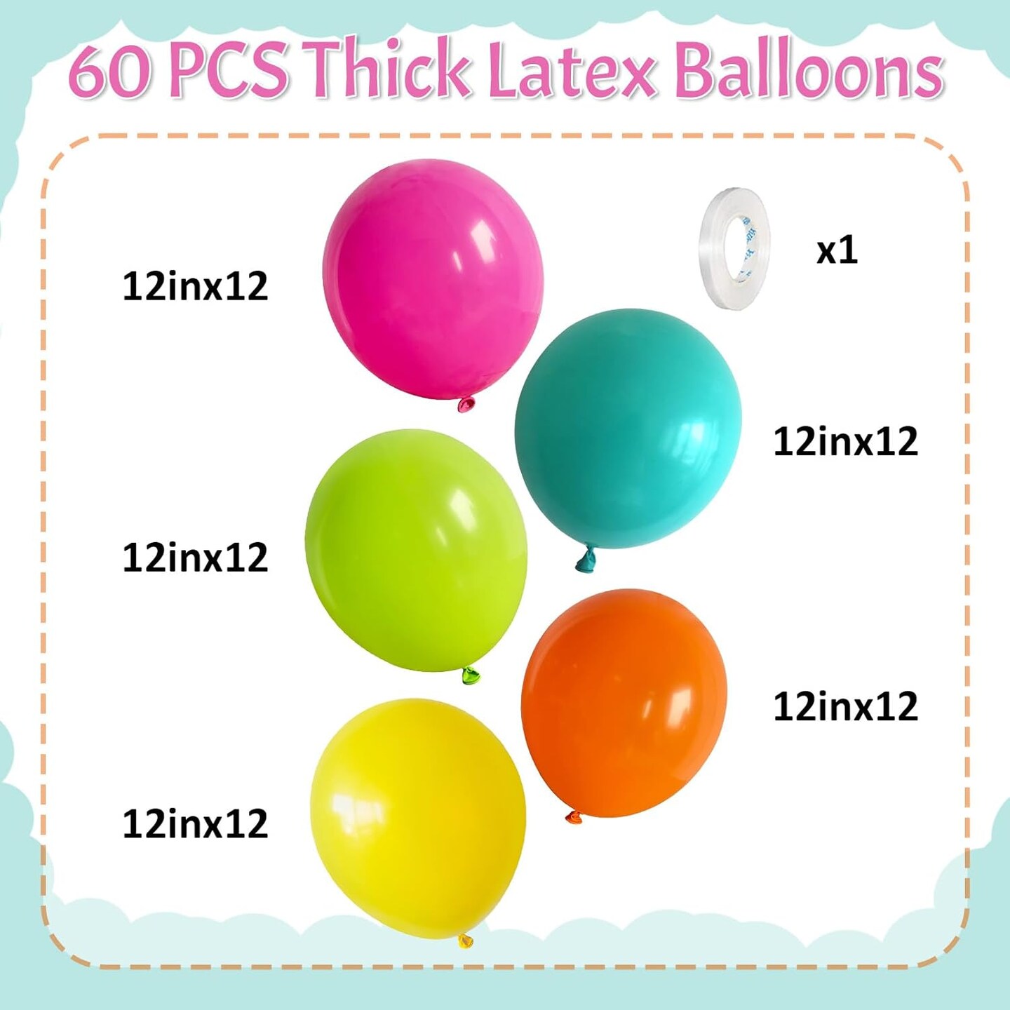 60 PCS Latex Tropical Balloons (12", Blue Pink Yellow)