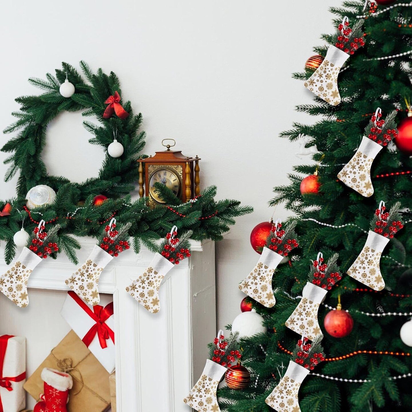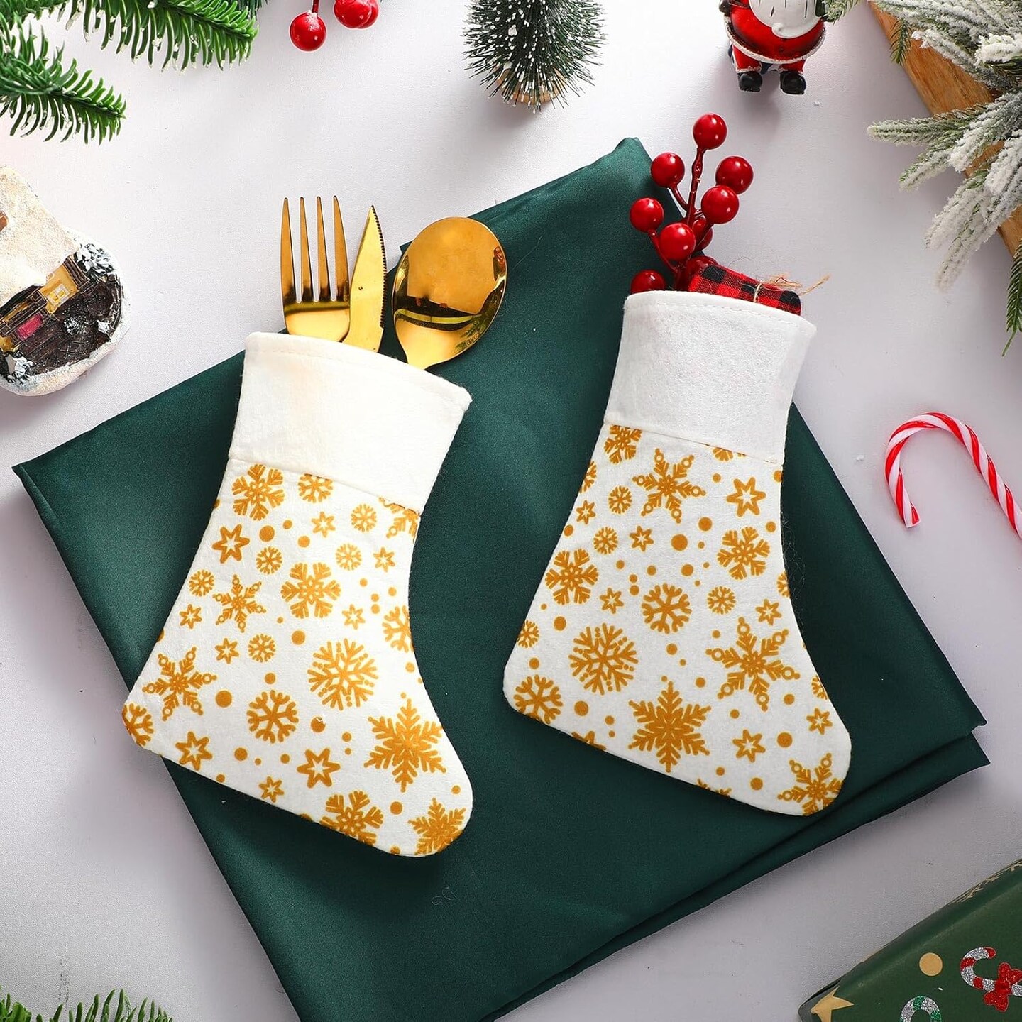 60 Pcs Mini Christmas Stockings Bulk Snowflake Stockings Christmas Hanging Felt Stockings for Fireplace Knife Spoon Fork Holders Family Holiday Xmas Party(Off White)