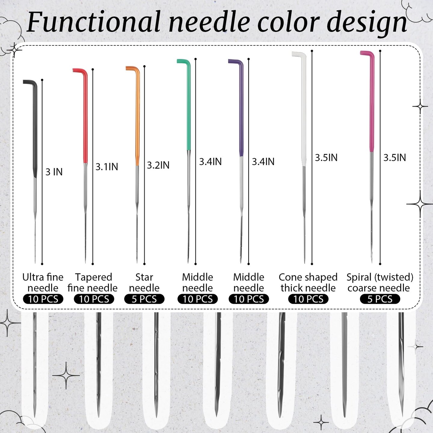 60 Pcs Needle Felting Needles 7 Colors,Wool Felting Supplies in 7 Sizes Needle Felting Tool with Twisted, Cone, Triangular Metal Felting Needles Color Coded Felting Needles for Beginners