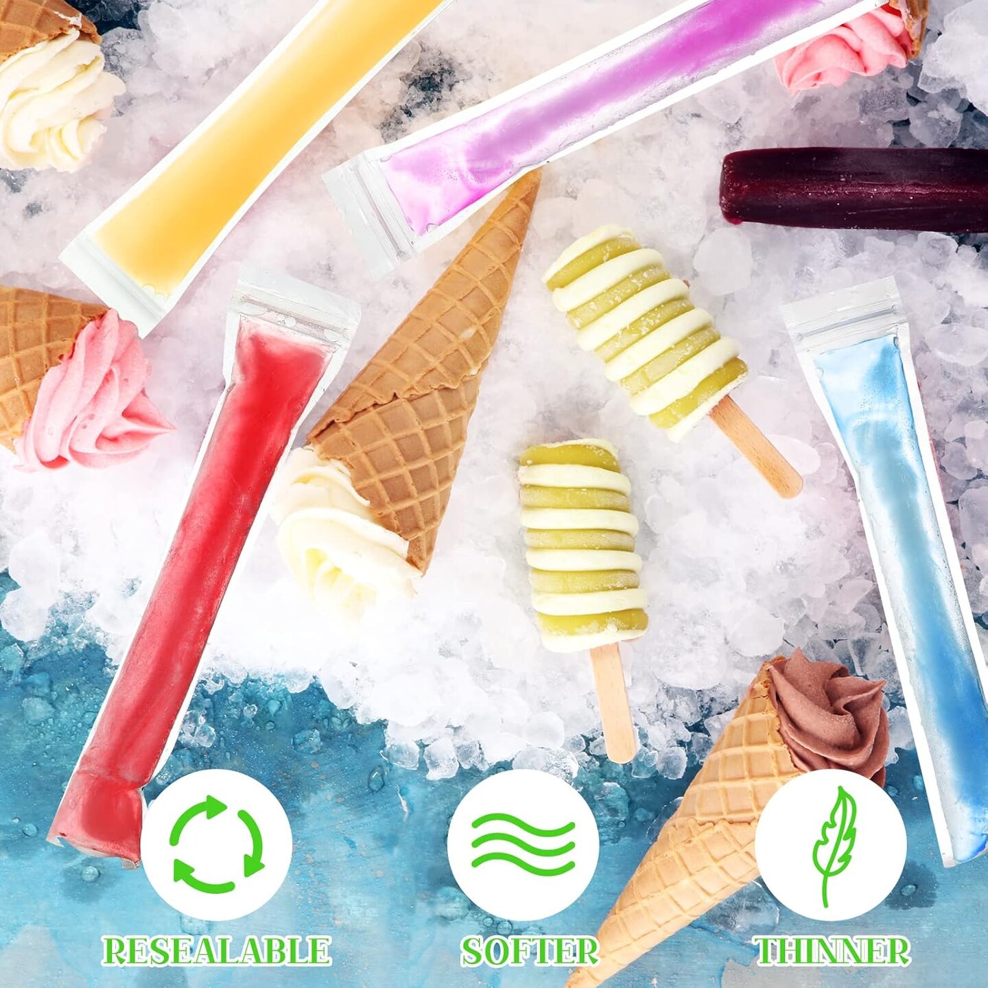 600 Pcs Disposable Ice Mold Bags with 1 Silicone Funnel Freezer Tubes with Zip Seals Candy Ice Mold Yogurt Tubes Pouch for Snack Juice Fruit Smoothies Party Favor (2.2 x 11 Inch)