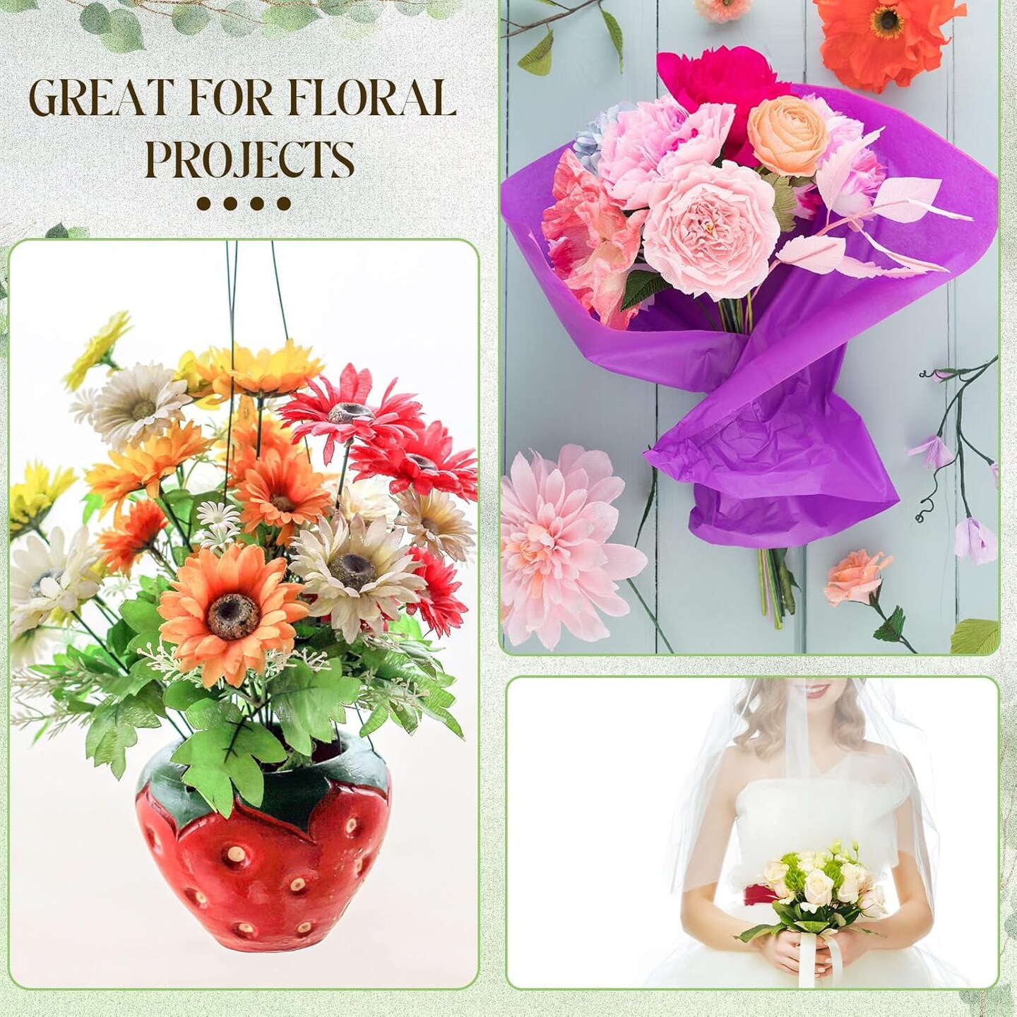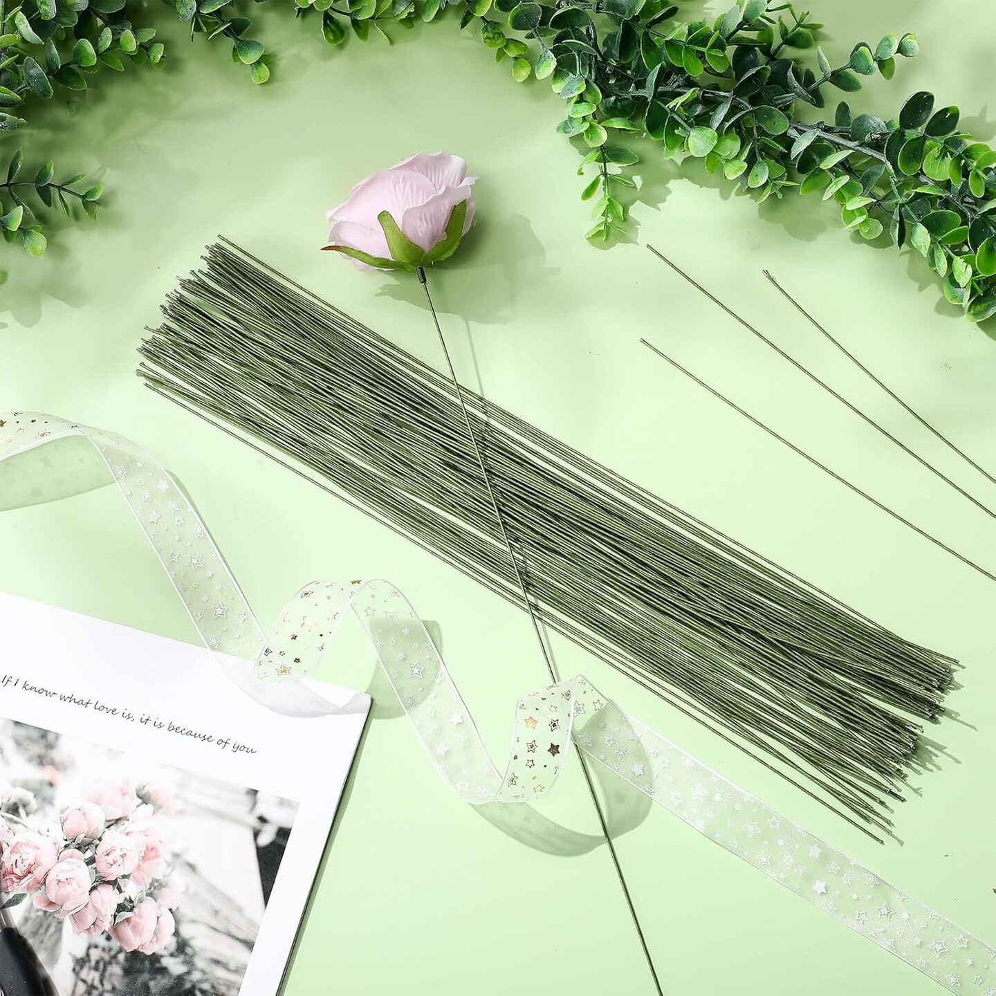 600 Pieces 18-Gauge Green Floral Wire – 16 Inch Paper-Wrapped Stems for DIY Crafts, Christmas Garlands, and Flower Arrangements, Dark Green