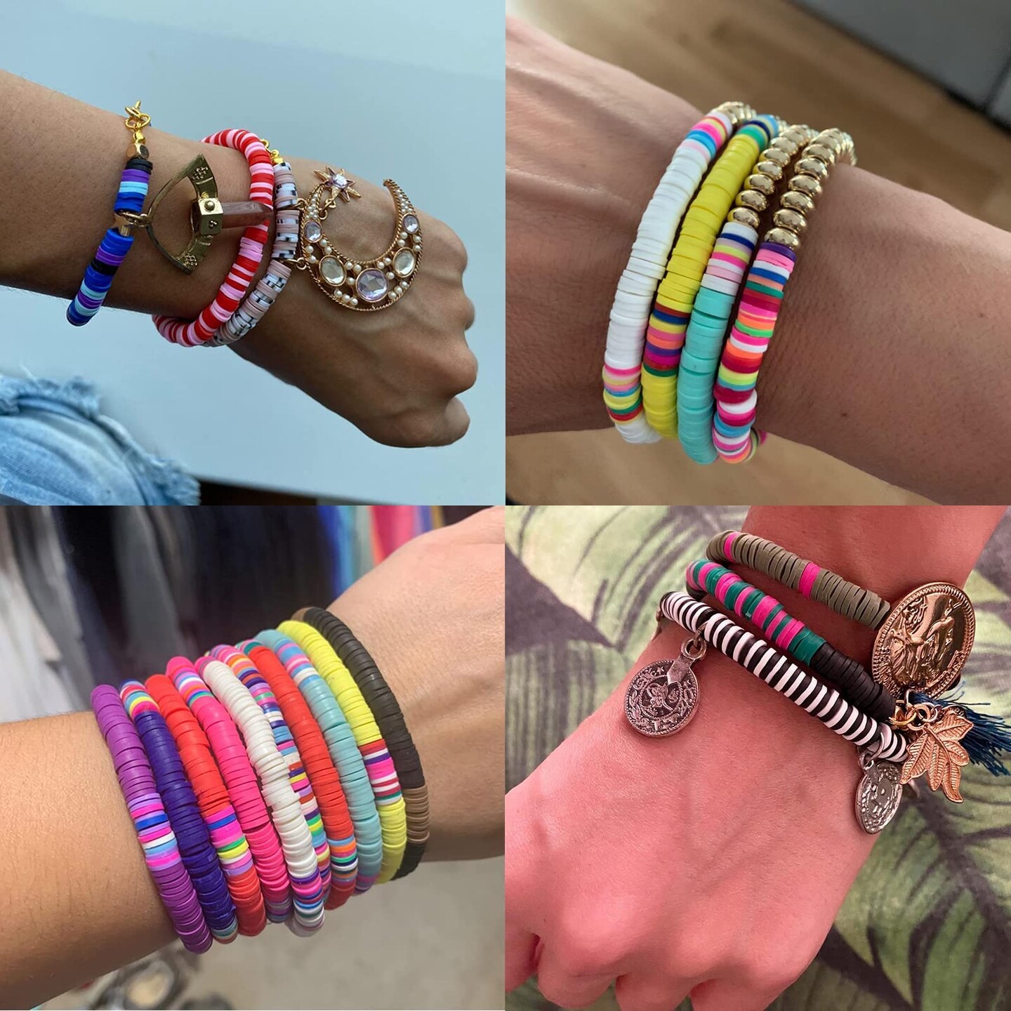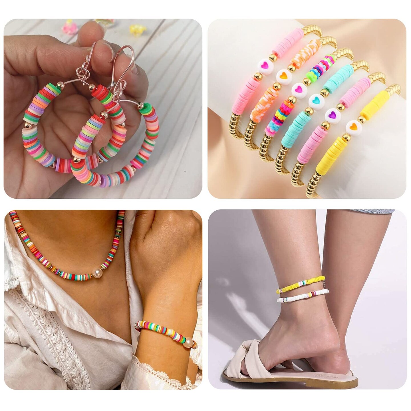 6000 Pieces 24 Colors 6mm Polymer Clay Beads,Bracelet Making Kit,Preppy Flat Spacer Heishi Beads for Jewelry Making with Smiley Face Beads Letter Beads Pendant Charms kit,Gifts/DIY