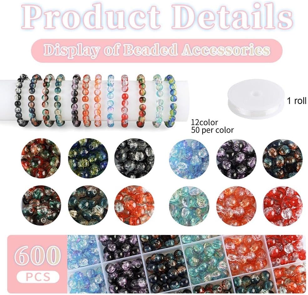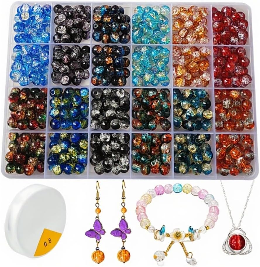 600pcs 8mm Crackle Glass Beads for Bracelet Jewelry Making Kit (Multicolor) 7.56 x 5.2 x 0.87 inches