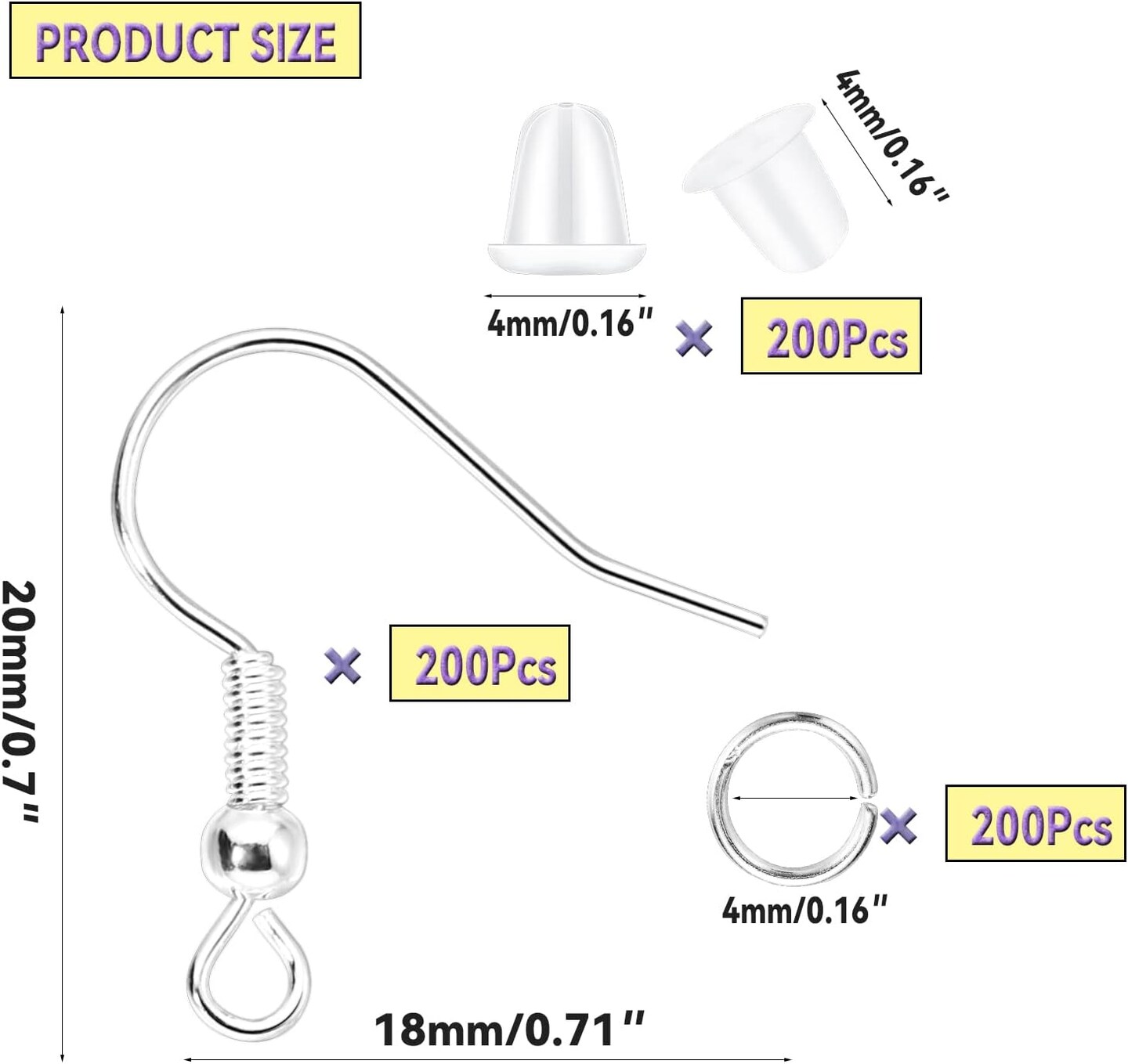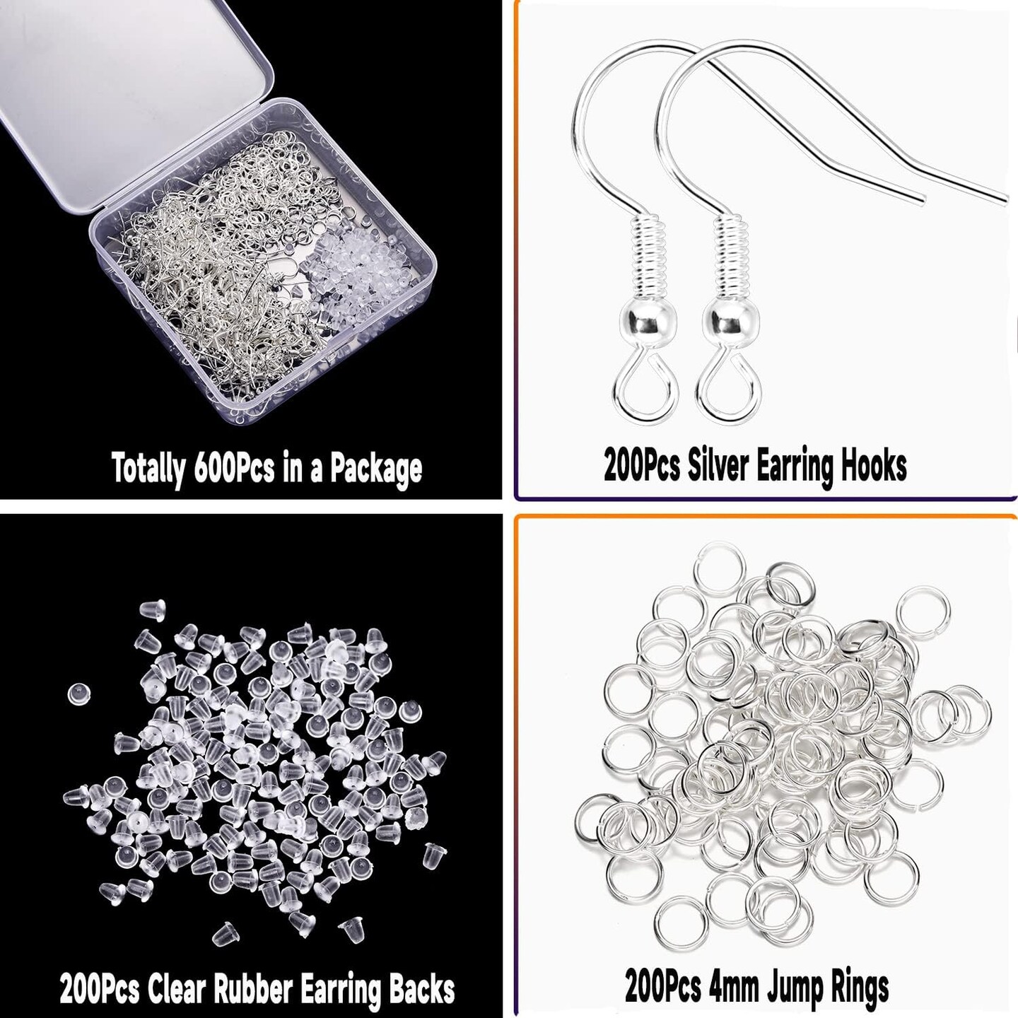 600Pcs Hypoallergenic Earring Hooks, Silver Earring Making Kit, Supplies with Earring Backs and Jump Rings for Jewelry Making (Silver)