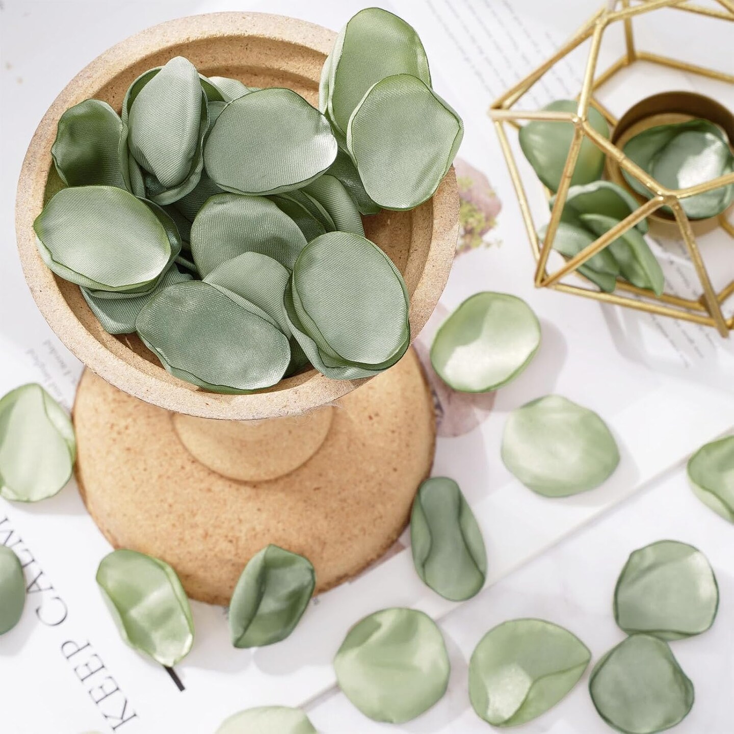 600Pcs Silk Rose Petals Sage Green Flower Petals Artificial Scatter Flowers for Bridal Shower Romantic Night Wedding Aisle Table Centerpieces Reception Tables Decorations