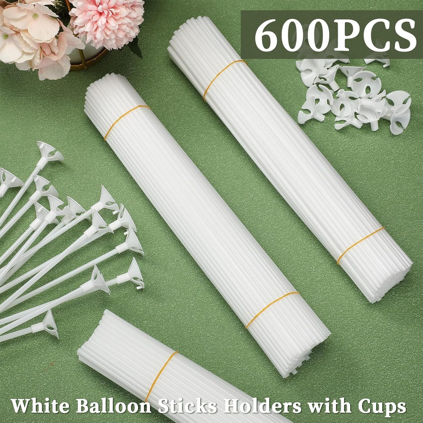 600pcs White Plastic Balloon Sticks with Cups – Reusable Holders for Party, Wedding & Holiday Decor