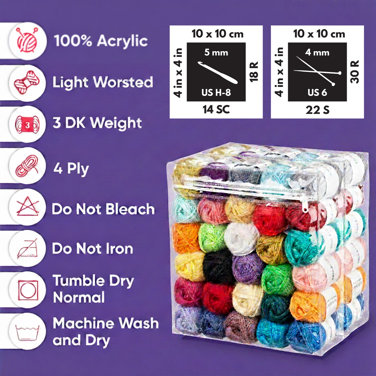 60*20g Acrylic Yarn Skeins - 2600 Yards of Soft Yarn for Crocheting, Knitting and Craft Projects