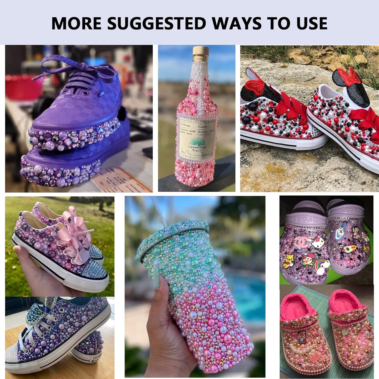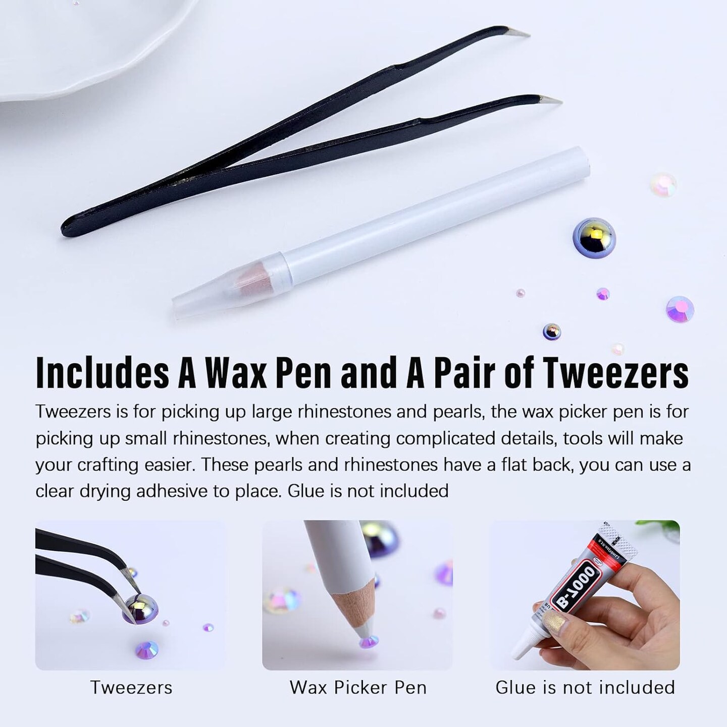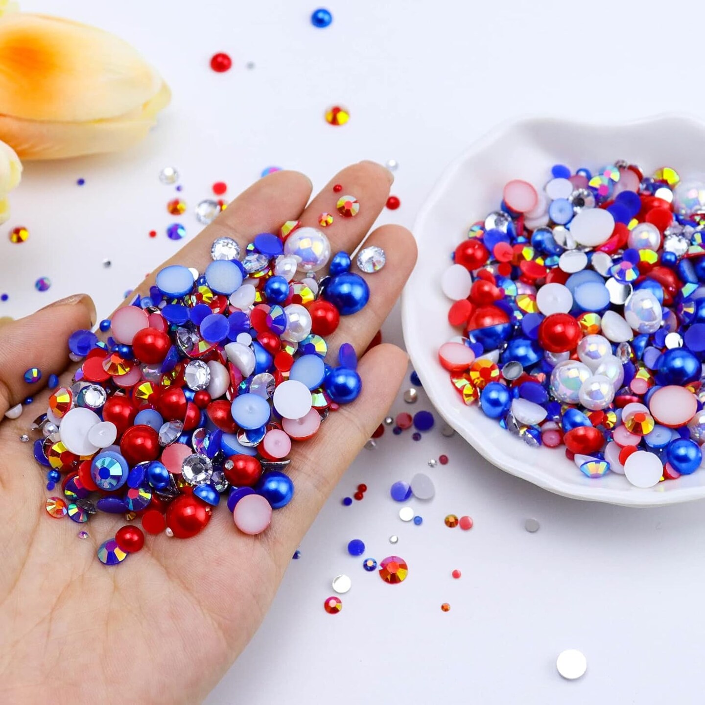 60g Mix Flatback Pearls and Flatback Rhinestones for Crafts(White|Red|Blue)
