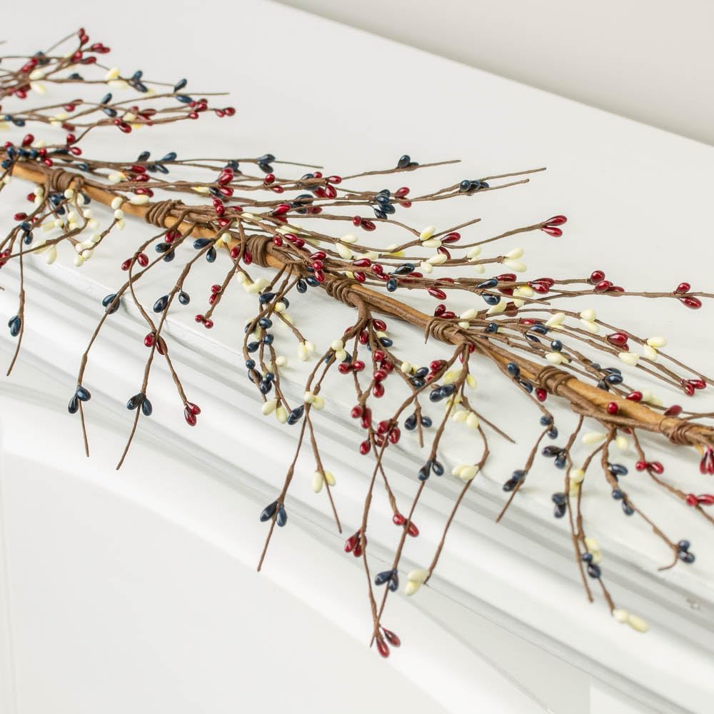 60-Inch Patriotic Pip Berry Garland in Red, White, and Blue – Rustic Primitive Wreath Garland for 4th of July and Memorial Day Décor