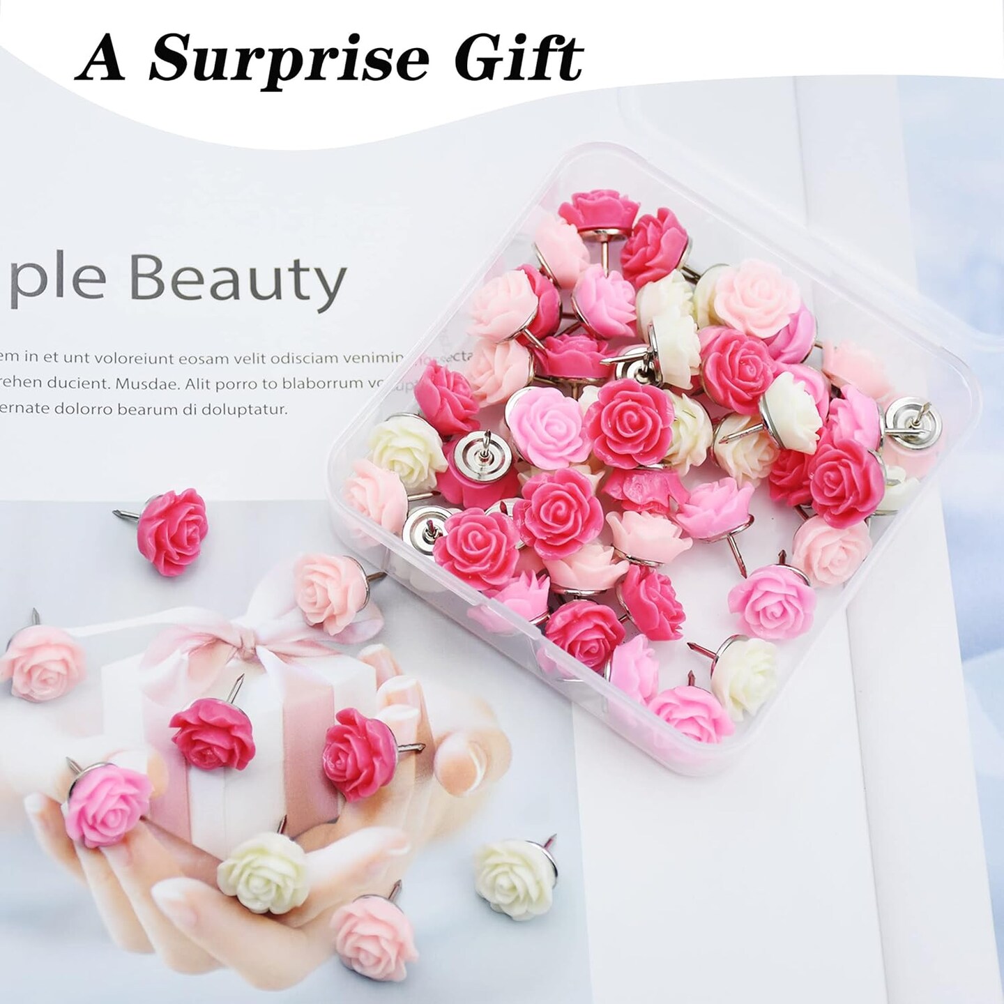 60-Pack Red Rose Decorative Pushpins – Gradient Flower Thumb Tacks for Cork Boards, Office, School, or Home Organization