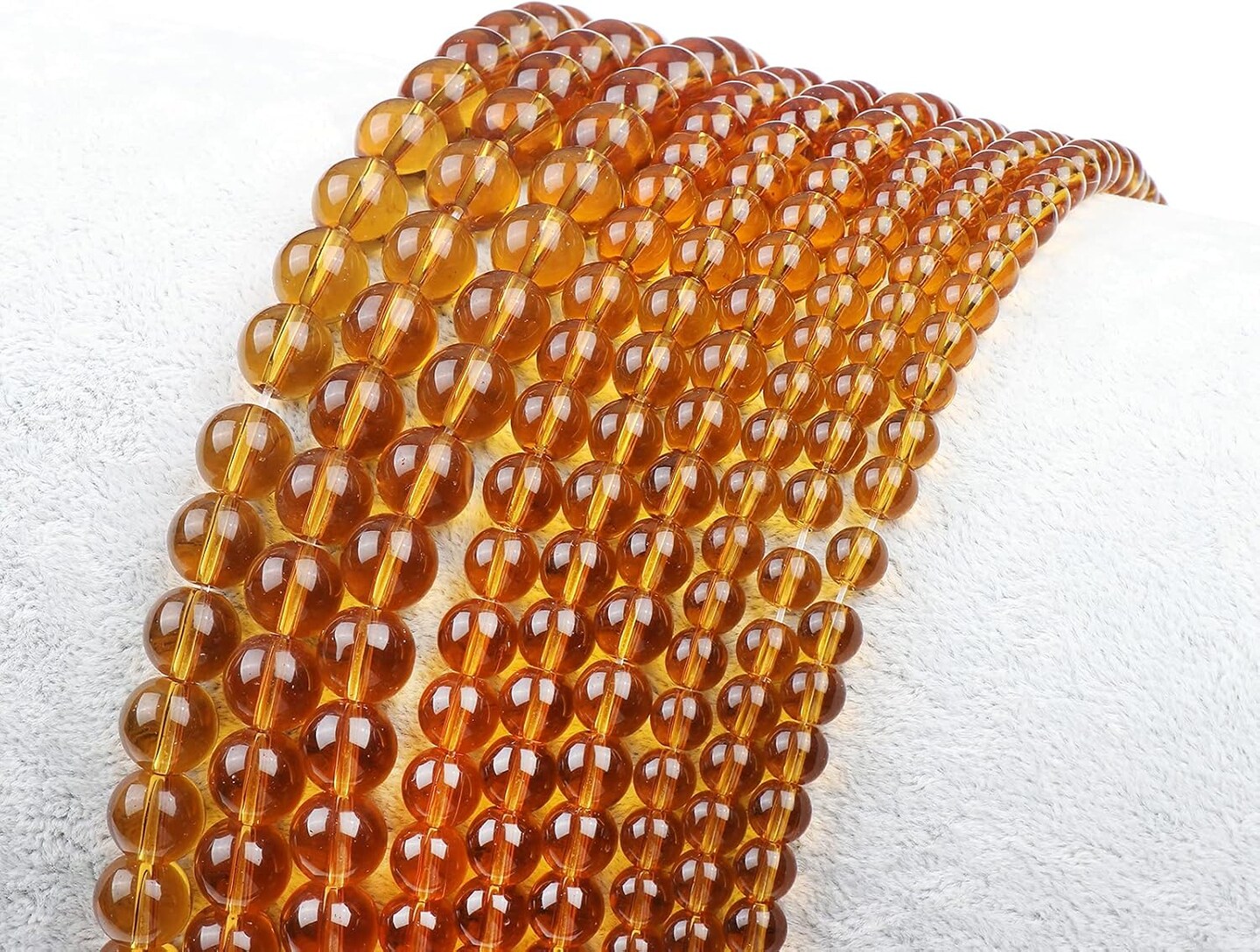 60pcs 6mm Natural Stone Beads,Gemstone Round Loose Beads for DIY Bracelet Necklace Earrings,Stone Beads for Jewelry Making(Amber Crystal)